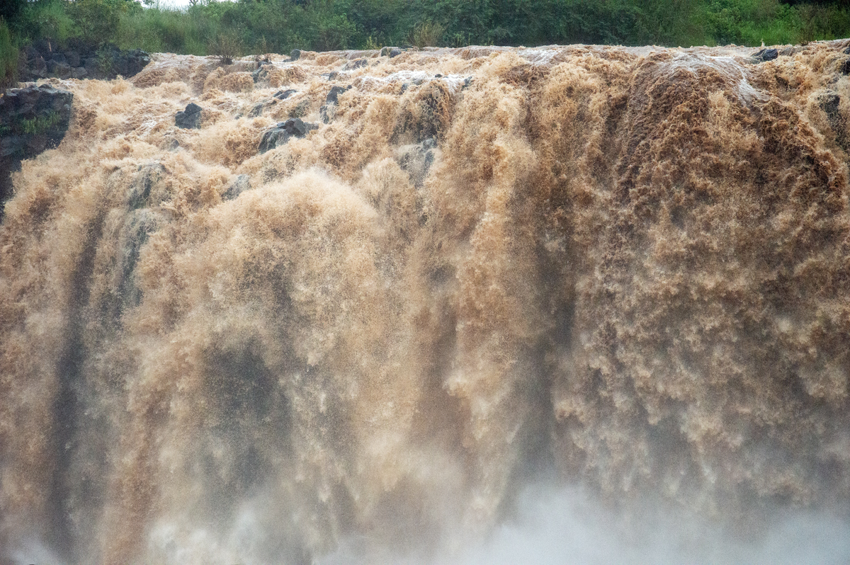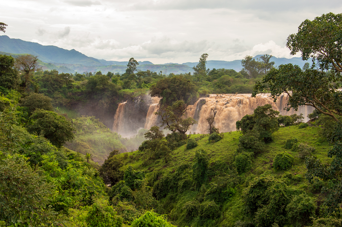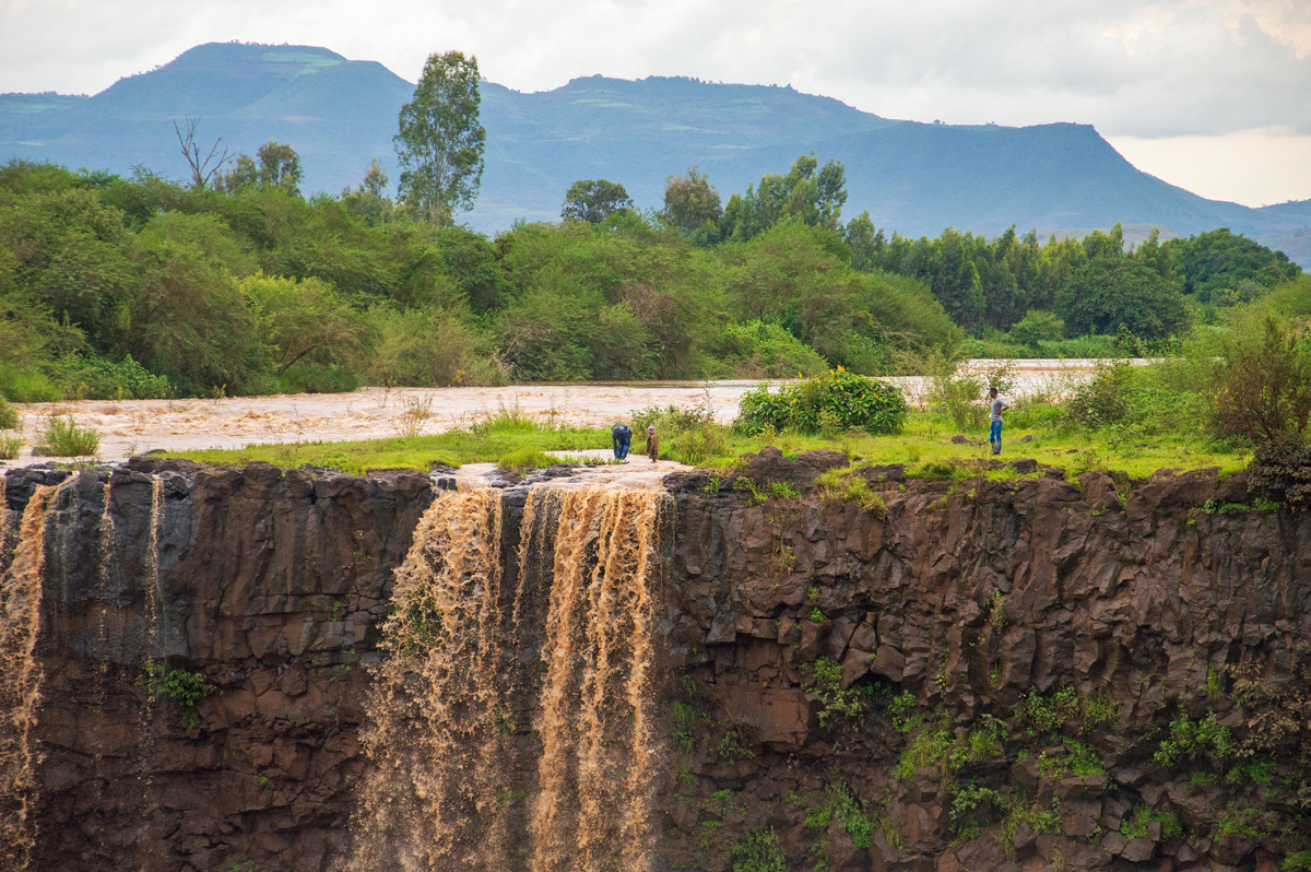 Southeast of Bahir Dar, the 400 m wide water masses of the Blue Nile plunge down a 45 m high cliff. Due to the construction of a waterpower station upstream, there are strong fluctuations of the water level, even though the power station became less important after the construction of another one at Beles river. The falls are called Tissisat or Tissabbay which means “steaming water” or “steaming Abay (Nile)”.