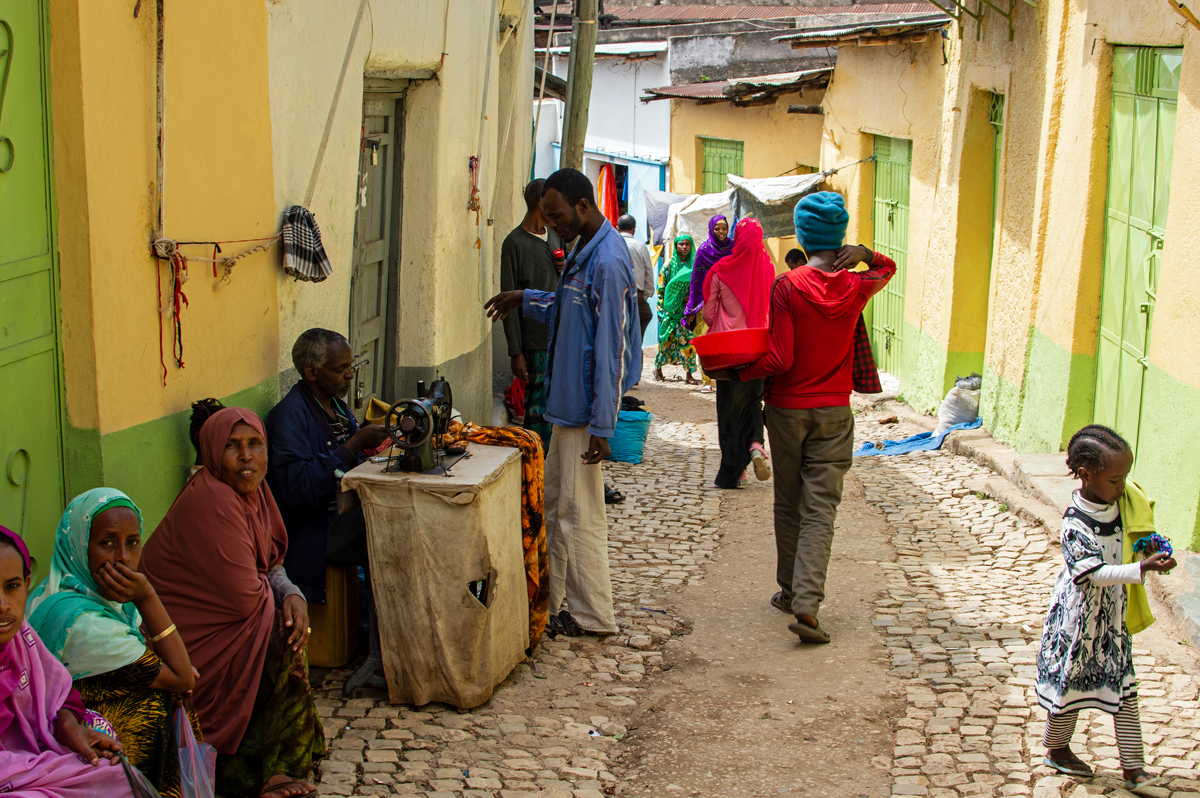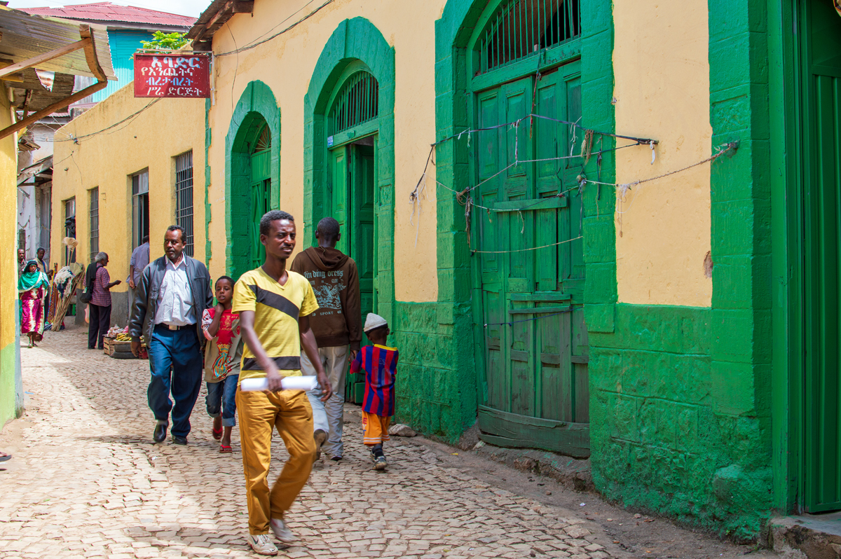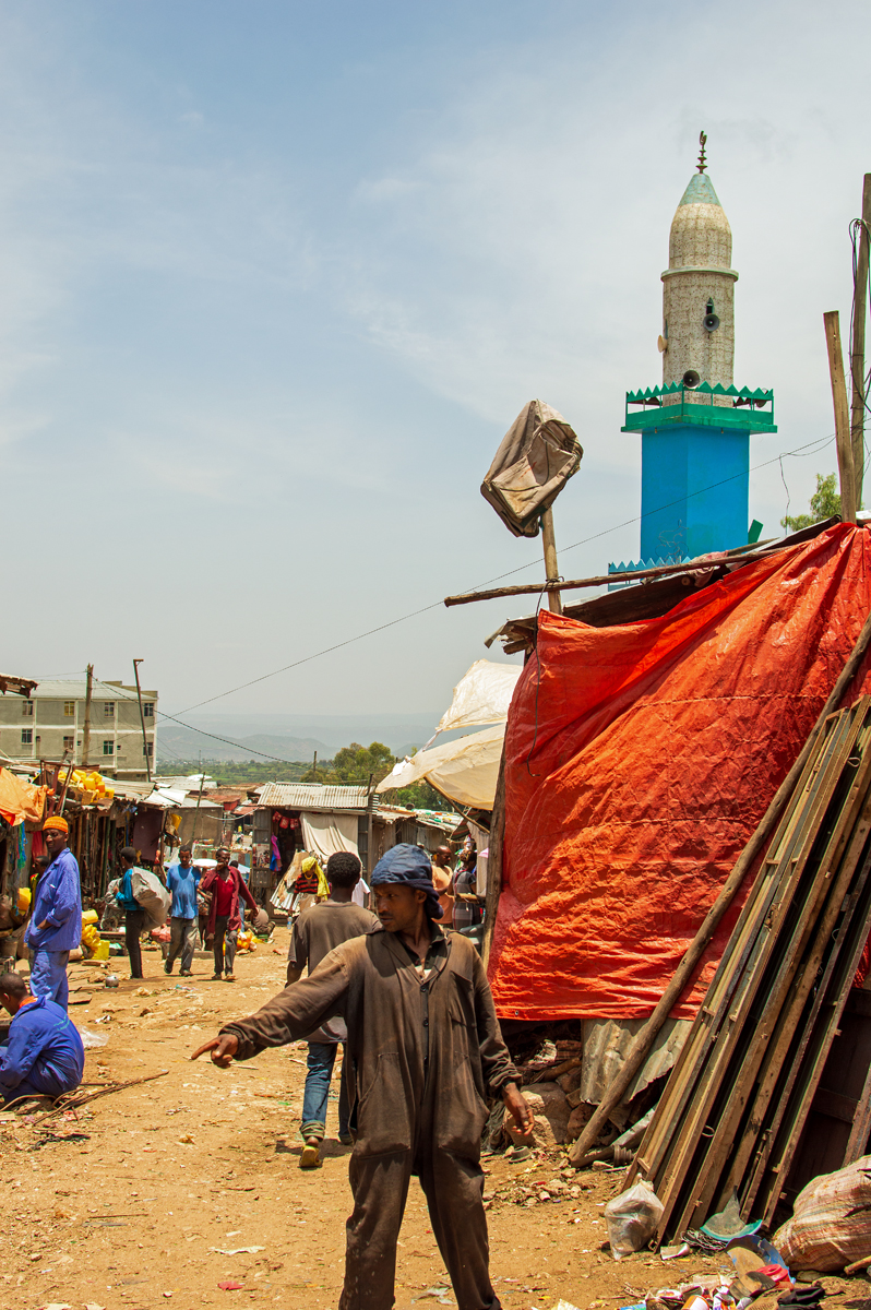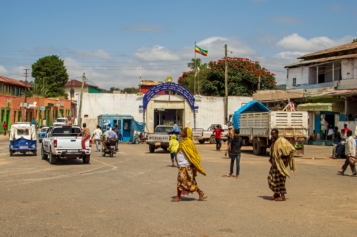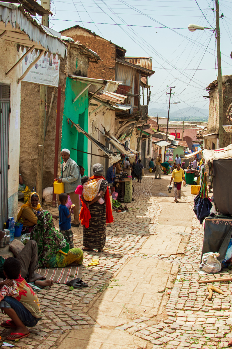 Emir Nur, successor of legendary Ahmed Grang, the one who fought the holy war in the name of the Islam against the Amharic Christians of the highland, had the wall around the town built in the 16th century, with five gates symbolising the Five Pillars of Islam. After the conquest of the town by king Menelik II., he added another two. Through one of it leads the only road accessible by car and meets Feres Megala (horse market) after a few metres, the largest square around old town and the starting point for several alleys leading like sunbeams into the architectural maze.