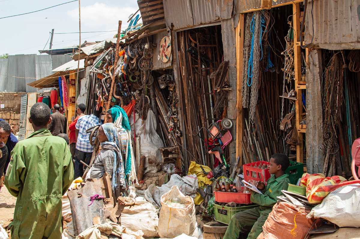Unweit des gigantischen Shoa-Tor-Markts, außerhalb der Altstadt, befindet sich eine Reihe ineinander übergehender Märkte, von denen der sogenannte Recycling-Markt wohl einer der kuriosesten ist. Hier wird buchstäblich alles aus Metall repariert oder zu nützlichen Alltagsgegenständen weiterverarbeitet. Vermutlich ist es kein Zufall, dass sich in direkter Nähe zwei Busbahnhöfe befinden, was die Beschaffung von Ersatzteilen deutlich erleichtert. Der Recycling-Markt geht direkt über in einen Markt für Kleidung, genannt Cigaratera, weil dort früher selbst gerollte Zigaretten verkauft wurden. Direkt daneben liegt der Schmuggler-Markt, auf dem scheinbar die Frauen das Sagen haben, denn sie sind es, die die kleinen, in enge Marktbuden gezwängten Shops betreiben, in denen tatsächlich illegale Schmuggelware, die zumeist auf alten Karawanenstraßen von Djibouti durch die Danakil-Senke oder von Somaliland durch die Wüste nach Harar gekommen ist, verkauft wird. Modeartikel, Mobiltelefone und jede denkbare Art von Elektronikartikeln sowie Schmuck gibt es, entweder als spottbilliges chinesisches Plagiat oder als unschlagbar günstiges Original.