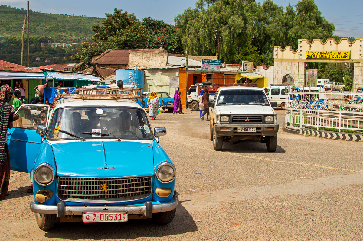 There is a memorial in the centre of Feres Megala in honour of those who left their lives fighting Meneliks troops, and it displays the five original gates to the old town. The white buildings had been used by French poet Arthur Rimbaud who had lived in Harar at the end of the 1880s as a grocer and arms dealer. The ancient Peugeot taxis – among them especially the 404 – are part of Harar’s picture like the American oldtimer characterise Havana and Cuba, and they are a proof of the once strong engagement of the French in eastern Ethiopia.