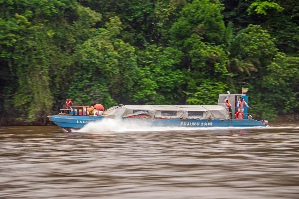 There are motorized pirogues commuting daily between Lambaréné and Port Gentil, which takes more than four hours downstream and more than five hours upstream. The Oogué is meandering through dense rainforest where there are only few clearings with tiny settlements along the riverbank. The river is important in terms of freight traffic, to transport timber and other natural resources to Port Gentil. Today, the city is one of the largest in the country with close to 200.000 inhabitants, and it is the most important business location – especially because of the Gabon´s only oil refinery.