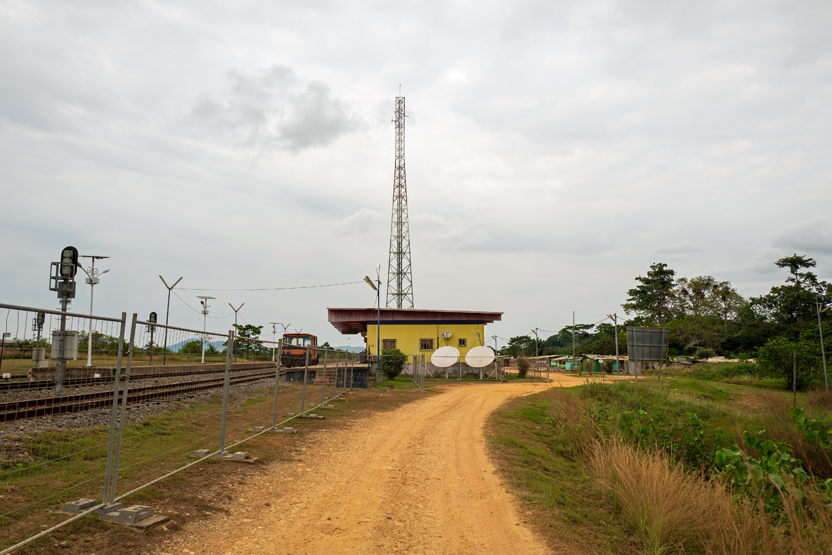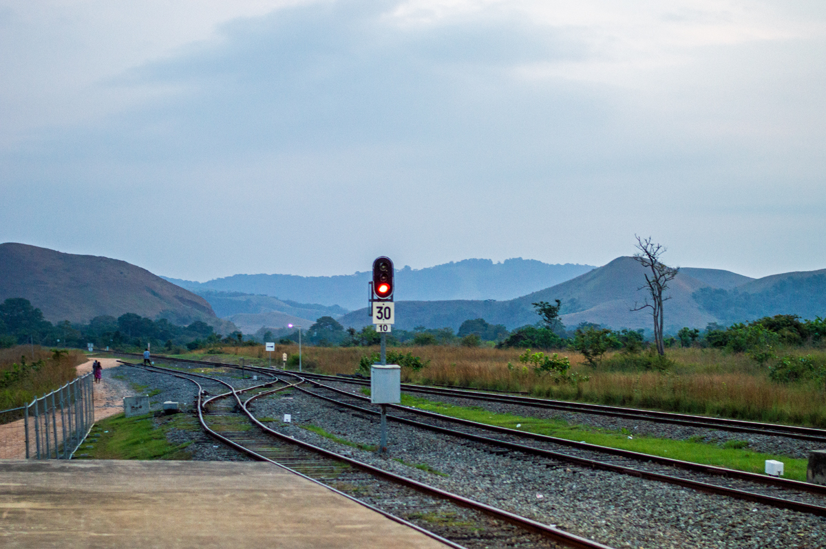 The stations along the tracks of the Transgabonais all look alike, rectangular buildings painted in yellow and blue, with huge circular apertures at the front as well as a big open waiting area with classic ticket counters and the most uncomfortable wooden benches one can think of. Not to forget the huge flat screen tv where there was a preliminary game of the Football World Cup on that evening. Germany already had been eliminated, and I don´t remember the game anymore, but it has been a pleasant diversion.