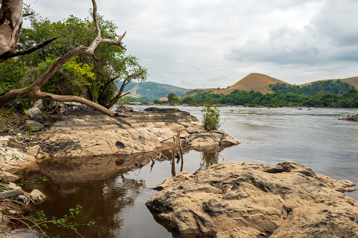 Am nächsten Tag besorgten wir uns direkt Bahntickets, um nicht noch einmal in eine solche Lage zu geraten. Wir wollten weiter nach Franceville, um eine unserer üblichen Runden durch das gesamte Land zu drehen. Dann arrangierten wir im luxuriöseren Lopé Hotel, von dem das Hotel Mbeyi der preisgünstigere Ableger ist, eine Wanderung im Regenwald sowie einen Game Drive in der Savanne für den nächsten Tag und machten einen Spaziergang am Ufer des beeindruckenden Oogué, aus dem zur Trockenzeit zahllose Felsen ragten, zwischen denen das Wasser in gefährlichen Stromschnellen hindurchströmte. Außerdem freundeten wir uns mit den Mauretaniern an, die unserem Hotel direkt gegenüber einen kleinen Supermarkt betrieben, der uns mit Zigaretten und eiskalten Softdrinks versorgte.