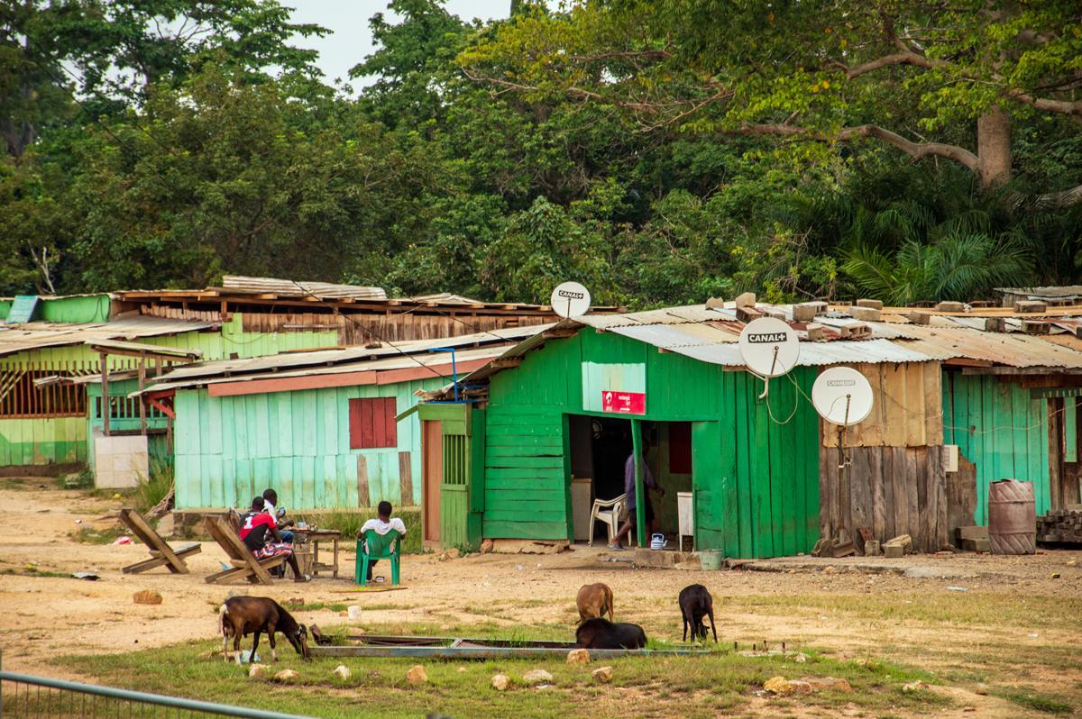 Just to be safe, we bought our train tickets on the next day. We had planned to proceed to Franceville for one of our usual round trips through the country. Then, we organized a forest walk as well as a game drive in the savanna for the next day with the more luxurious Lopé Hotel that has the same management as Mbeyi Hotel. Afterwards, we took a walk along the bank of mighty river Oogué with its countless rocks sticking out of the water during dry season and creating dangerous rapids. Furthermore, we made friends with the Mauritanians running a small supermarket just on the other side of the road from our hotel, providing us with cigarettes and cool soft drinks.