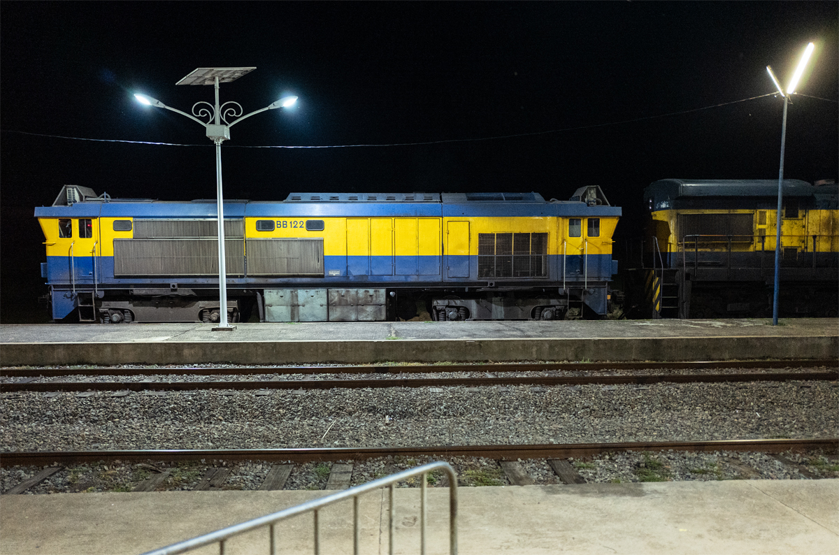 Als wir am Bahnhof ankamen, bemerkten wir, dass wir nicht die einzigen waren, die diese Idee hatten. Auch einige Einheimische waren, ohne einen Fahrschein zu haben, auf der Straße nach Ndjolé gekommen, um nachts noch einen Platz in der Transgabonais in den Südosten des Landes zu ergattern. Und es wurden im Laufe des Abends immer mehr.