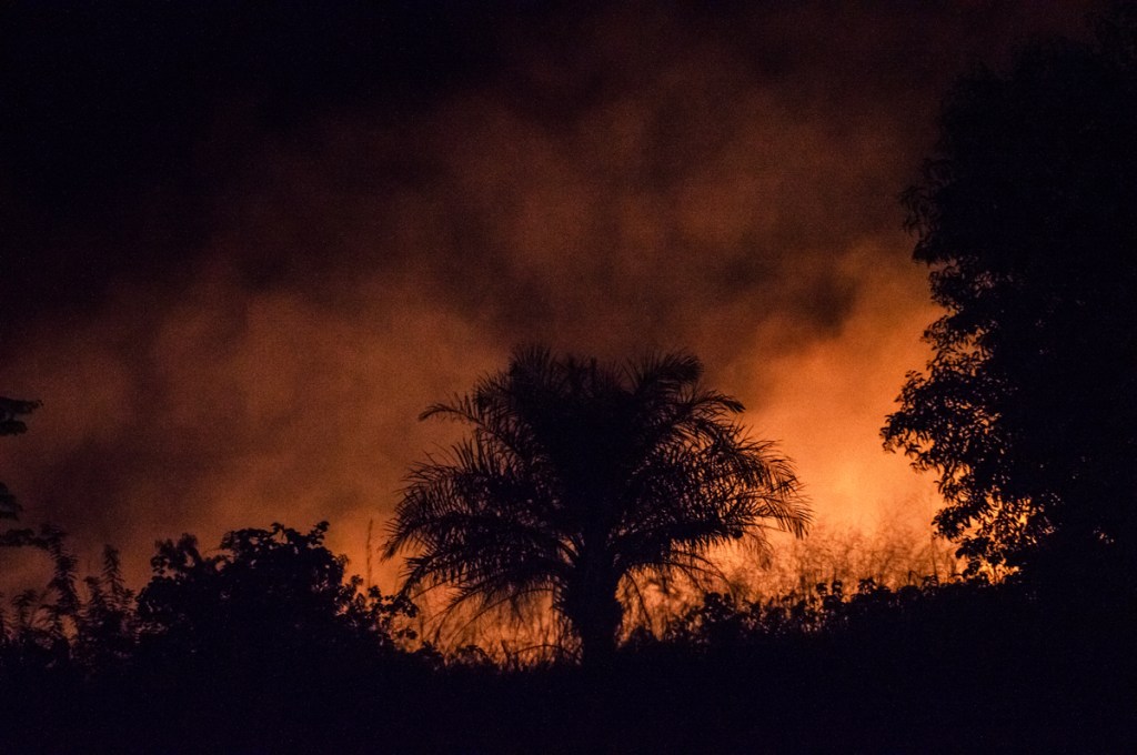Between the hotel and the supermarket, the RN1, a horrible dirt road, is running from Libreville through the National Park and – further south as a tarmac road again – on to Franceville and the Congolese border. In the evening, there was a bush fire on the other side of the RN1, but nobody seemed to care. As usual, the fat ladies left to the hotels entry were sitting in front of the shed where they roast bushmeat and sell it to the people while getting drunk on Regab beer in half-litre bottles. Those not in the mood for boozing met at the Mauritanian supermarket which is open from eight in the morning up to ten at night.