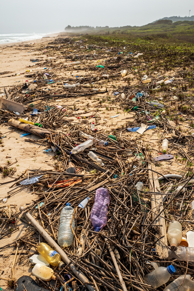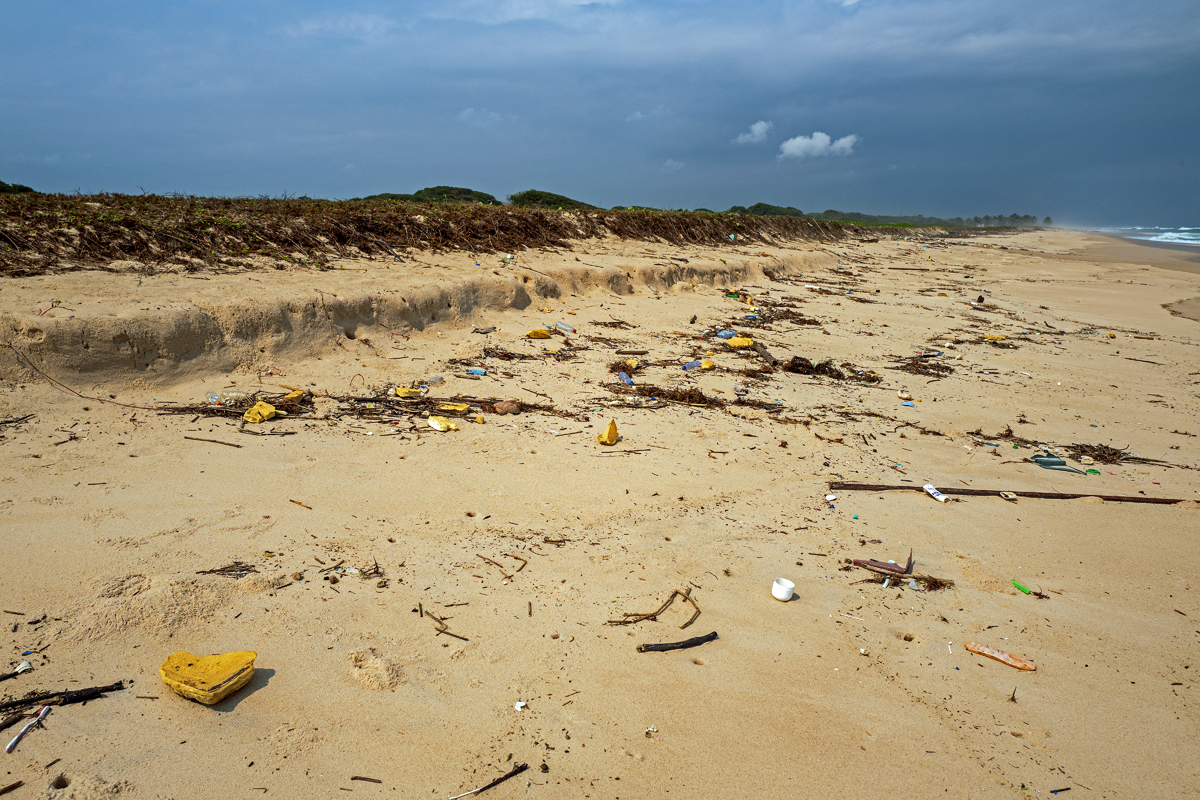 Mayumba ist nicht mehr als ein kleines Fischerdorf auf einer etwa 80 Kilometer langen, aber nur einen Kilometer breiten Halbinsel tief im Süden Gabuns. Etwa 60 Kilometer davon werden zusammen mit dem Meer davor als Nationalpark geschützt. Neben Delphinen und vielen weiteren Meerestieren gibt es dort etwa zehn Prozent der weltweiten Buckelwalpopulation zu bestaunen. Die einzige Unterkunft am Strand des Atlantiks ist das Hotel Mbidia Koukou, das sehr einfache Zimmer in runtergekommenen Hütten mit Eimer-Dusche und Klimaanlage hat. Die Mitarbeiter des Hotels sind sehr freundlich, aber es gibt nicht viel zu tun in Mayumba, abgesehen von ausgedehnten Spaziergängen am endlosen Strand oder – wenn man Surfer ist – der Suche nach der perfekten Welle. Wir hatten daran gedacht, den gleichnamigen Nationalpark zu besuchen, aber 400 Euro für zwei Stunden Wanderung schien uns ein wenig happig. In Gabun hört man oft, dass in Mayumba der schönste Strand des Landes, vielleicht sogar der Welt liege. Die Wahrheit ist: das wird alles ruiniert beim Blick auf das, was die enormen Wellen Tag für Tag an den Strand spucken. Nirgendwo Menschen, und der Strand ist voll mit Plastik. Der Müll kommt aus dem großen südatlantischen Plastikstrudel. Man findet brasilianische Haarwachs-Verpackungen, norwegische Rasierschaumflaschen, Spritzen – zum Teil mit Nadel, Plastikteile von Schiffen, Bojen, Schuhe. Später hörten wir von einem verendeten Wal, der am Strand von Mayumba gefunden worden war. Man fand 40 Säcke Plastikmüll in seinem Bauch – am schönsten Strand der Welt.