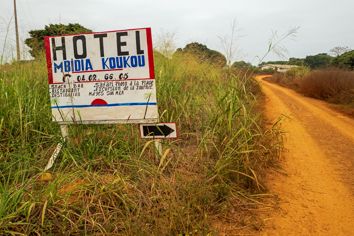 Somewhere between Ndendé and Tchibanga, in the middle of the rainforest, there was a clearing with two open reed huts, simple shelters with a chest-high walls made of clay, wooden poles and reed roofs. The road was blocked by a tree with a narrow passage on the right blocked by an oil barrel. A bored police officer came shambling across the lawn between the huts and the road, telling us to get out of the car and come over. We were reluctant at first, but the guy had a gun, and so we decided that it might do us some good getting out making a few steps after sitting around in the car for the last hours. In one of the huts, we sat down in front of a young officer who picked up a paper sheet from the floor behind his desk and started copying every single information from our passports before asking us questions such as “What is your parents’ profession?”, “What is the colour of your dog´s eyes?” and “What did you have for dinner three years ago?”. Then, he asked us for an expense allowance – of course, while his companion was tormenting the girl right next to us by talking endlessly in a military tone about responsibility and the importance of ID documents. To our right was a fireplace with a charred bottle hanging from the roof right above, behind the officer, I could see two bottles with a white fluid, home-brewed palm nut wine. They were all drunk, armed and greedy, so I gave them more than they deserved, and we were all free in the matter of ten seconds. But before we could proceed, I had to empty a glass of that palm nut wine with the young officer who told me what a good catch I´ve made with my wife. I just stared at the holster with his gun, smelling the alcohol from his breath. Then, we were allowed to leave.