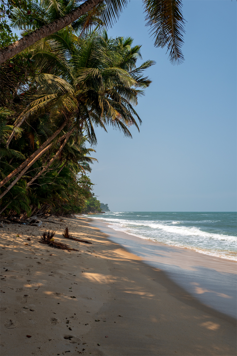 Der Strand war schließlich der vermutlich idyllischste, den ich je gesehen habe – wenn man den Plastikmüll ignorierte. Wir rechneten zwar damit, dass jeden Moment Froschmänner aus den Fluten auftauchten oder Fallschirmspringer von oben auf uns herabstürzten, aber glücklicherweise blieb dort alles friedlich. Auf dem Rückweg kamen wir dann sogar doch noch zu einem schönen Wildtiererlebnis, als eine sich auf dem Weg sonnende Lianennatter vor uns ins Gebüsch flüchtete. Da ich nur die Leica mit dem Weitwinkel dabei hatte, musste ich die Kamera wohl oder übel zu der ziemlich giftigen Schlange in den Busch stecken, um ein gutes Bild zu bekommen, immer in der Hoffnung, die erste Attacke möge dem Objektiv gelten und nicht meinen Fingern, die ich so weit wie möglich hinter der Kamera versteckte. Aber die Schlange guckte bloß interessiert und wartete, bis ich mein Foto hatte. Dann verließen wir sie, den Wald, Libreville und das Land – nach einer irgendwie schrägen, unendlich anstrengenden und bitteren Reise.