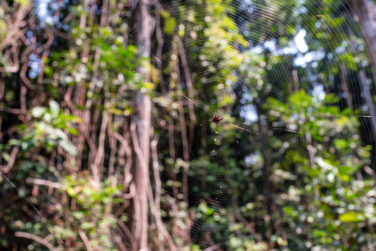 We had chosen the longest possible trail that should lead us through the whole forest to a beach at the coast. At the entry, the trails are still wide but deeper in the forest, they are quite narrow but neatly laid out and excellently marked and after a few minutes, you already get the feeling of being in the middle of the jungle, far from every kind of civilization. The oldest and biggest trees are marked and can be assessed through a list which is hard to get your hands on, because you need a prior registration at the forestry office and then, you can pick up a copy of the list on arrangement.