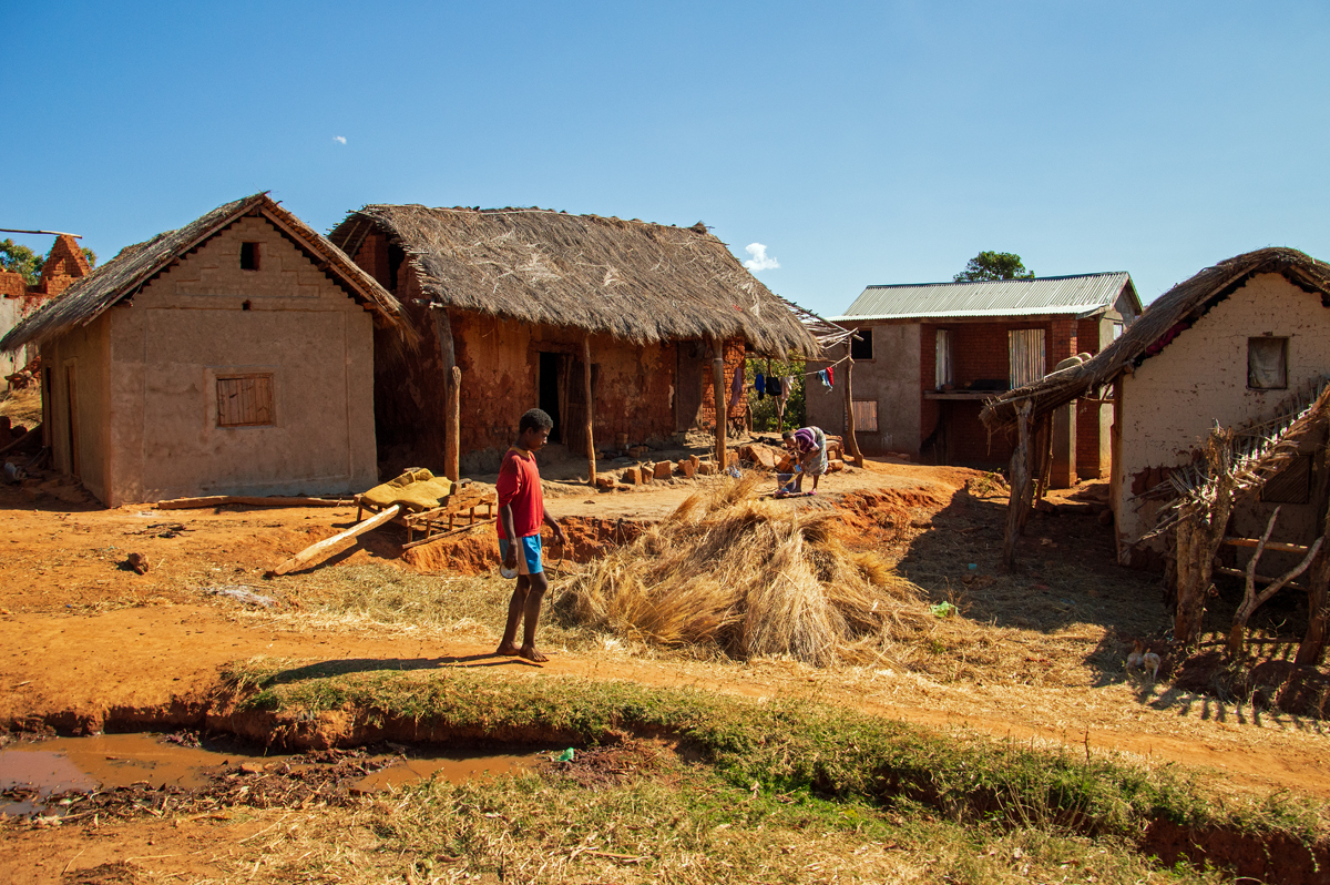 Central highlands architecture is simple, but sometimes artificially exaggerated. Most of the houses have a rectangular layout with a north-to-south alignment. In central highlands they tend to build two-, three- or even four-storey houses made of bricks and straw, and at the coast it’s single-storey buildings made off wood, bamboo, palm leaves – and nowadays more and more often corrugated sheet metal. The windows and the entry are on the western side of the houses for the rain as well as cyclones are coming from the east and the wind, which can be quite chilly in southern/austral winter, is blowing from north to south or the other way around.