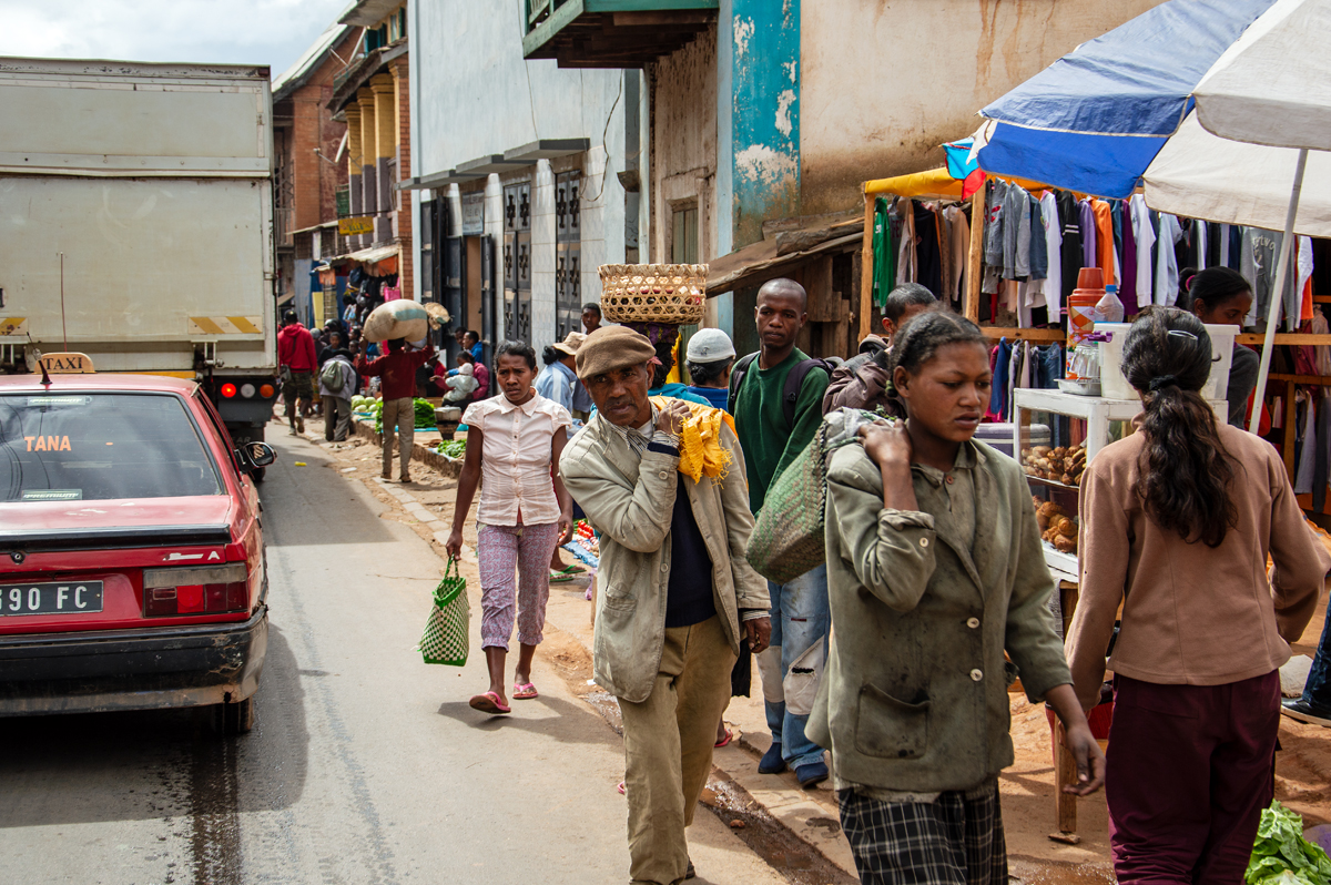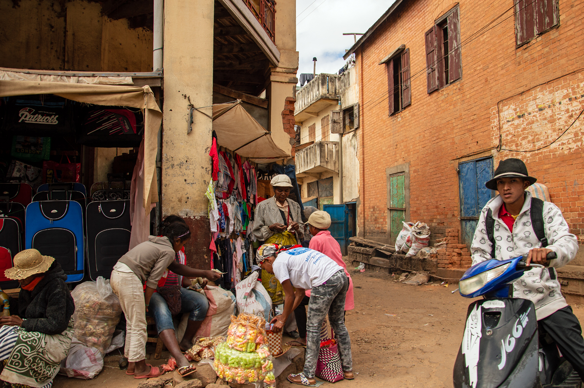 Die Betsileo sind berühmt für ihre Holzschnitzereien, die man überall in der Stadt kaufen kann. Meistens – und besonders zum großen Markt am Samstag – sind die Straßen verstopft mit Marktbuden, Menschen, Eseln, Rollern, Autos, LKWs, und es gibt viel zu sehen. Die verwinkelten Straßen und Gassen sind steil, und so verdienen sich unzählige Halbwüchsige und erwachsene Männer ihren kärglichen Lebensunterhalt damit, Waren auf selbstgebauten Karren die Hügel rauf und runter zu transportieren, entweder bergauf im Schweiße ihres Angesichts schiebend oder bergab mit gelöster Bremse wie irre dahinrasend. Auf einem der Hügel steht eine hübsche Kirche, und unweit davon gibt es ein Benediktiner-Kloster, wo Nonnen einen Laden betreiben, in dem es Gewürze, Honig, Strohhüte und manchmal sogar Käse zu kaufen gibt.