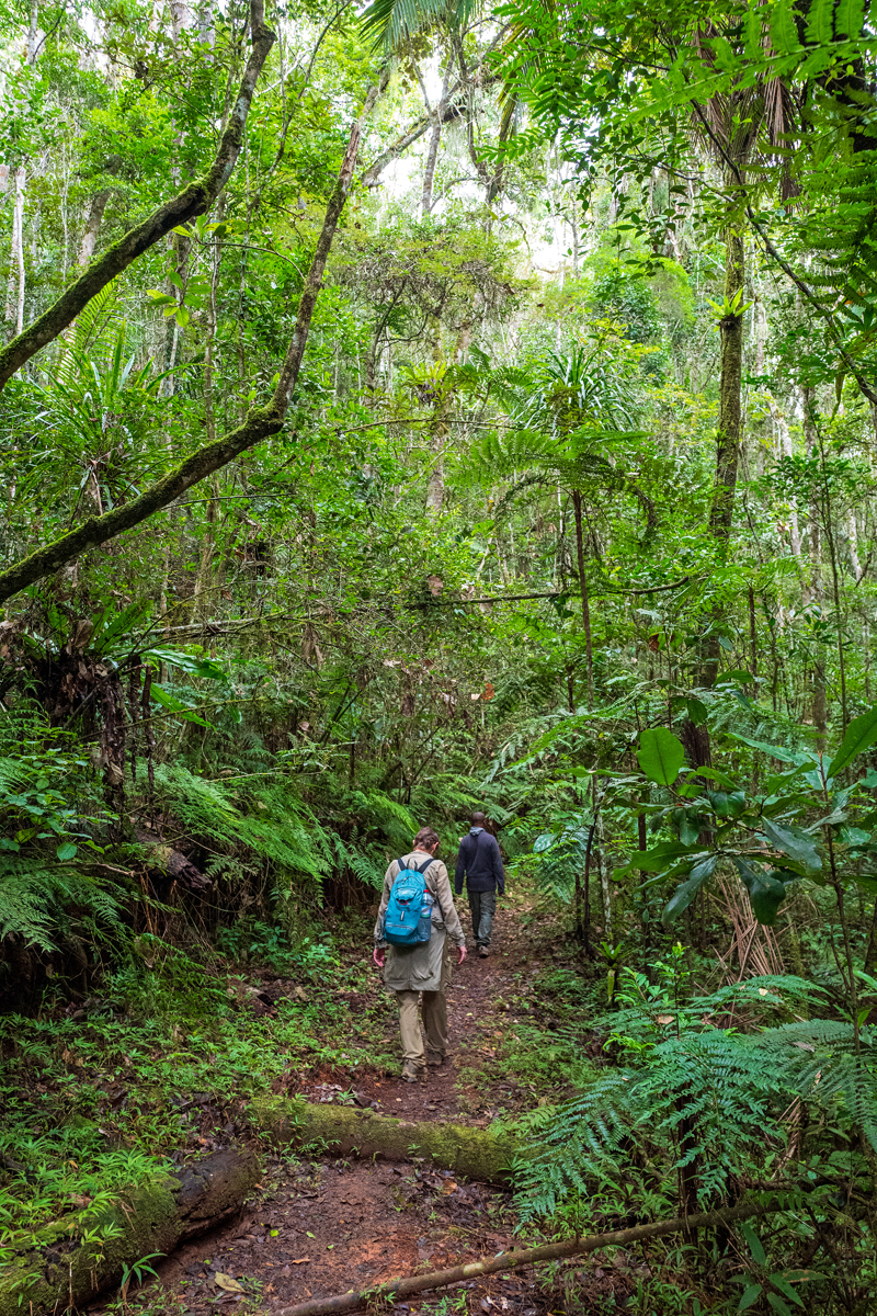 Andasibe ist ein schöner Ort, selbst wenn es den ganzen Tag regnet, der Wald ist umwerfend, die Natur insgesamt überwältigend, tja, und die großen Touristengruppen… Beim Menschen gilt ja generell: Je größer die Gruppe, desto penetranter das Verhalten, was bei einer Demo für den Weltfrieden eine gute Sache sein mag, bei einer Wanderung in einem streng geschützten Wald aber eben nicht. Noch dazu, wenn sie auf der Suche nach dem perfekten Selfie-Standort mit starrem Blick auf den Bildschirm durch das Unterholz stolpern. Hinzu kommt, dass die meisten der Wald und ein Großteil seiner Bewohner gar nicht zu interessieren scheint. Alles, was sie wollen, ist, Lemuren zu sehen, das madegassische Äquivalent zu den Big Five in Ostafrika.