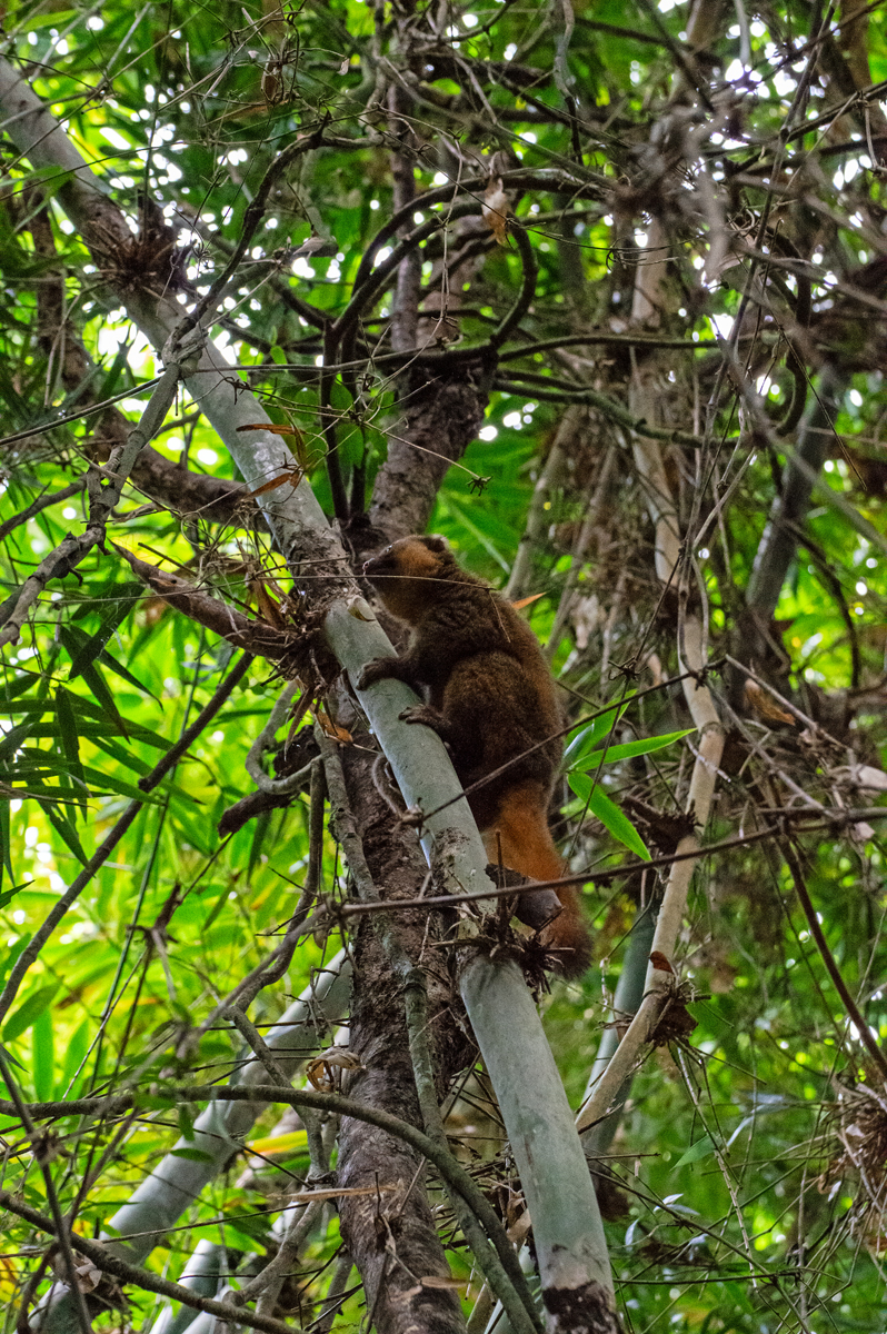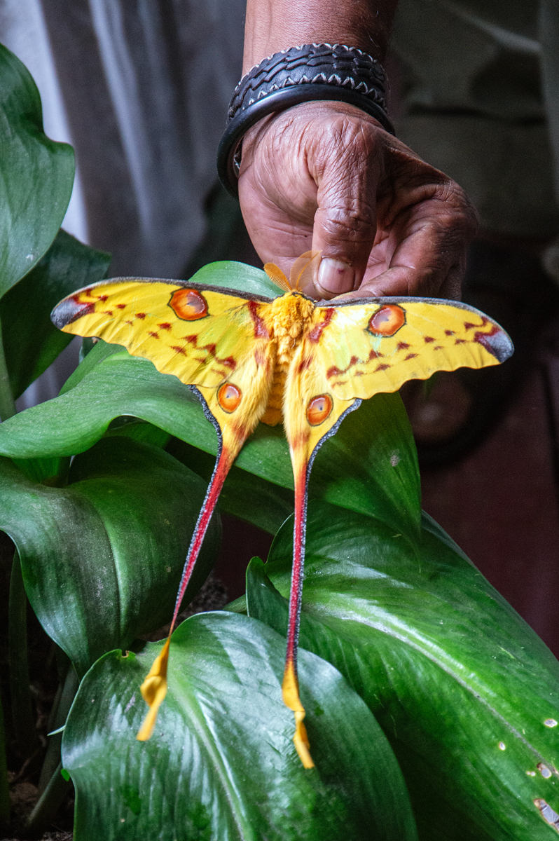 On a hike through the National Park of Ranomafana – with more than 40.000 hectares the third largest reserve in Madagascar: by crossing Namorona River you enter a moist, green world full of life that is much quieter than one expected. But of course, it´s the dense vegetation that dampens all noises, and the cracking and rustling of leaves and the undergrowth underneath your own strained steps is always louder than everything else. The air is humid, it´s warm but not hot, because it´s a montane rainforest stretching up to 1.300 m altitude. Butterflies like the enormous Comet moth are gliding along between the trunks; it´s dark under the forest canopy and the light cuts through the leaves in sharp splinters. Taking decent pictures is a true challenge at such conditions of illumination. As well as spotting animals. But the well-trained guides know their stuff, and they can even spot the smallest gecko, the tiniest mantis, and the most vivid lemur in the green chaos in front of your eyes. Those plushy “Ghosts of the Dead” (Lemures, lat.) with the big eyes are the main tourist attraction of the park and, of course, hard to find. Still in 1986, the German Bernhard Meier randomly discovered the hitherto unknown Golden Bamboo Lemur in the forest of Ranomafana. It´s one of the rarest Lemurs, truly endangered, and its status is classified as “critical”. Just like the Greater Bamboo Lemur in Ranomafana that feeds on – you guessed it – bamboo, Cathariostachys madagascariensis to be exact, and this bamboo, of course, is endemic too. Or the extremely rare Red-bellied Lemur, or the Milne-Edwards-Sifaka… It goes on and on and on. If you´re lucky, the guides spot those diurnal Lemurs up in the trees or even at eye level while nibbling on some bamboo, and there are many birds to watch as well.