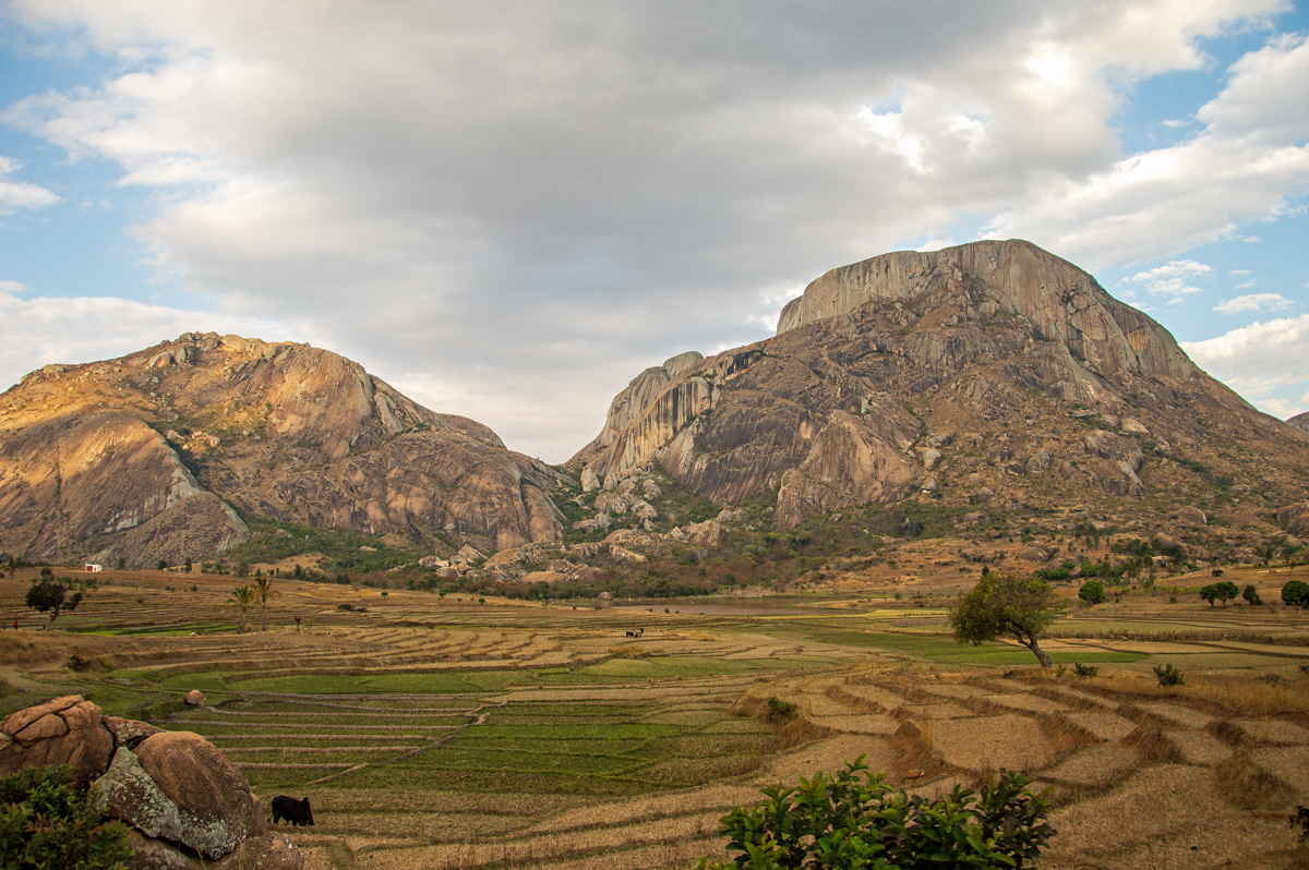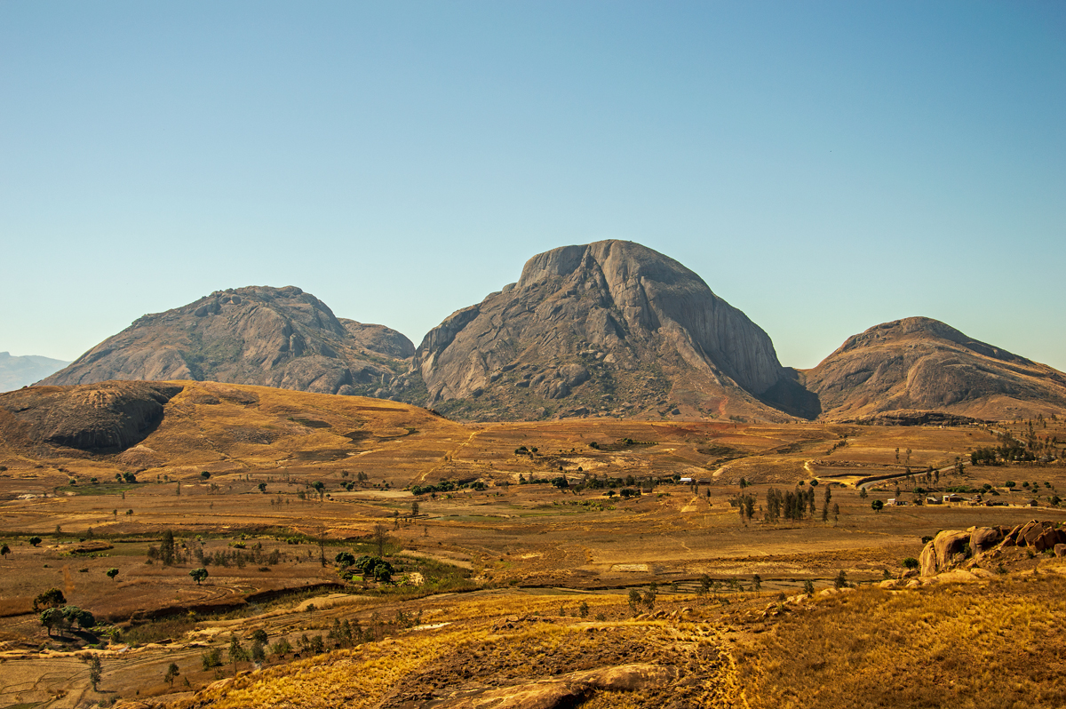 Das Andringitra-Massiv im Südosten Madagaskars, südlich von Fianarantsoa an der Kante zur Ostküste gelegen, besteht aus Granit und ist Heimat des Pic Boby, dem mit 2.657 m zweithöchsten Gipfel der Insel. Hier herrscht das kühle Klima des Hochlandes, und die Temperaturen können nachts auch einmal unter die 0° Celsius-Grenze fallen. Die monolithischen Felswände sind ein – noch größtenteils unentdecktes – El Dorado für Kletterer, traumhafte, aber wie immer entwaldete Landschaft inklusive.
