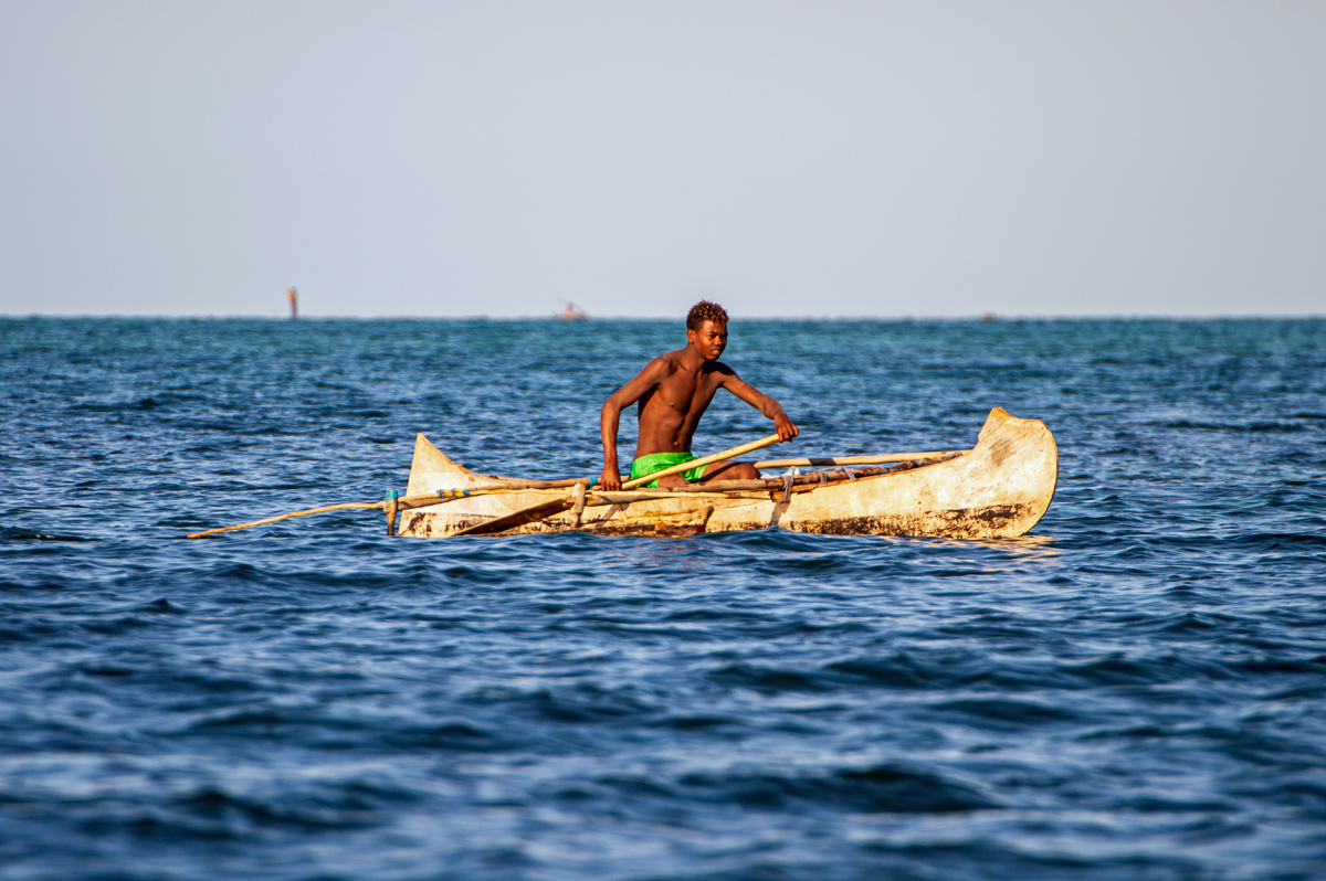 Der Kanal von Mosambik ist Teil des Indischen Ozeans und erstreckt sich zwischen Madagaskar und Mosambik etwa 1.600 km von Nord nach Süd und ist zwischen 420 km und 1.000 km breit bei einer maximalen Tiefe von 3.292 m. Ein warmer Strom fließt in südlicher Richtung durch den Kanal und bis vor die südafrikanische Küste. An der Südwestküste Madagaskars zieht sich ein 200 Kilometer langes, vorgelagertes Riff südlich von Toliara (Tuléar) bis hinauf nach Morombe. Zwischen dem Riff und den schier endlosen, traumhaften Stränden ist das Wasser seichter, ruhig und unterliegt der Gezeitenströmung. Das ist das Reich der Vezo Seenomaden. Wenn man die Buckelwale in ihrem Element erleben möchte, muss man auf eine – teilweise sogar der wissenschaftlichen Überwachung dienende – Wal-Safari gehen. Aber das bedeutet auch, dass man in einem winzigen Boot mit Außenbordmotor erst einmal die Brandung am vorgelagerten Riff durchbrechen muss, bevor man in das tiefere und rauere Wasser draußen im Kanal von Mosambik gelangt. Hat man sich daran gewöhnt, fortwährend herumgeworfen zu werden, während es in der Schiffsschaukel gleichzeitig kontinuierlich auf und ab geht, hat man vielleicht das Glück, in der Ferne eine Fontäne zu entdecken.