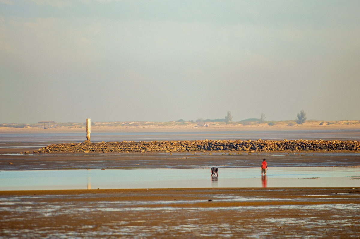 Only sometimes, a big carrier is landing in Toliara, and it often takes some time for containers to leave the port. Whatever! The actual port is just a few feet off. On the beach of Toliara, where the tides set the pace, flooding or draining the wide stretches of sand, that is the place where the fishing boats are landing, often steered by Vezo people sailing up and down the coast between Morondava and Morombe further north and Toliara in the south. Most of them come in when the tide is going out, so they have time enough for unloading and loading the vessels and to do a little trading before the tide is setting in again. Unloading and loading of the vessels is a job for the inevitable Zebu oxcarts. Depending on the tide, those massive Malagasy cattle are pulling the carts up to the neck in the water, whether to deliver or pick various goods, mostly food and daily goods, because a lot of those villages along the coast are only accessible by boat. Everything that can´t be produced in the villages has to be brought there by a pirogue on the ocean. Most of the time, the bags that get unloaded in Toliara are filled with charcoal, the most important combustible on Madagascar. That is why the last remainders of Malagasy forests still get chopped, clearing the way for the ubiquitous erosion.