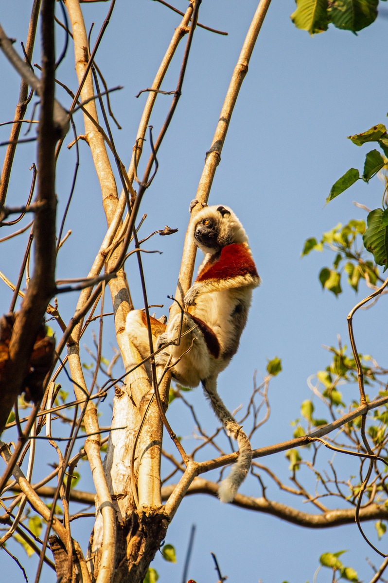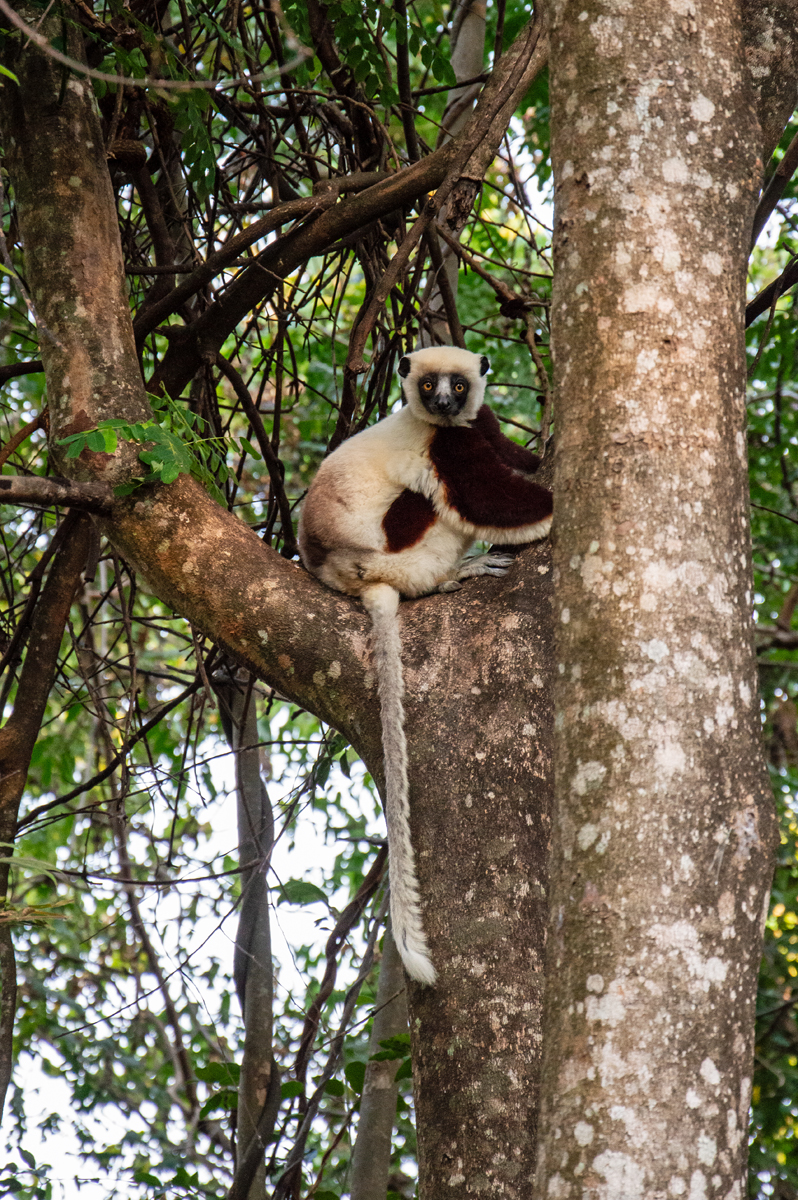 Dabei ist man mittendrin, statt nur ein distanzierter Zuschauer zu sein. Denn hier kommen Lemuren wie die wunderschönen Coquerel-Sifakas direkt bis ins Camp, überall gibt es für den aufmerksamen Besucher exotische Chamäleons oder prächtig gezeichnete Echsen zu entdecken, ganz zu schweigen von der artenreichen Vogelwelt. Ob der farbenfrohe Madagaskar Eisvogel, der nicht minder auffällige Madagaskar Paradiesschnäpper oder der Madagaskardajal, ein Verwandter unseres Rotkehlchens, ob der Madagaskar-Drongo, der so genannte „König von Madagaskar“, der Madagaskar-Wiedehopf oder der Madagaskar Fischadler, der als eine der seltensten Vogelarten der Welt gilt, sie alle können mit etwas Glück in Ankarafantsika beobachtet werden.