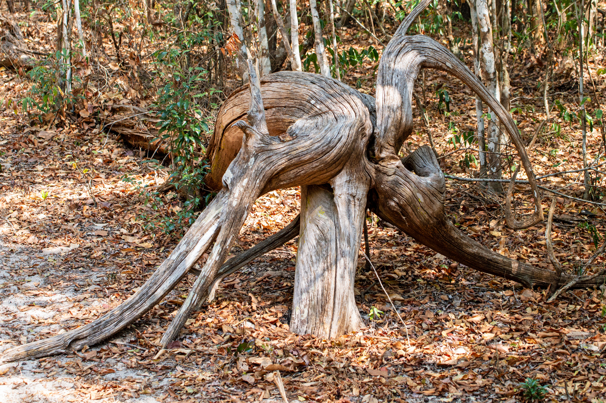 But it’s not as if a permanent river had cut its way into and through the rocks; it’s rather an escarpment due to erosion, where the soil got undermined by the waters during rainy season because of the lack of stabilizing root balls. So, parts of the ground just collapsed. Some old, experienced guide working at Ankarafantsika for decades told us that the valley appears different to the people after every rain season. It is constantly changing, and there will come the day, when all those fascinating rock formations will be gone. Up to that point, the valley is going to stay a place like an artist’s form and colour palette. The different types of rock are weathering at a different speed, which leads to those bizarre needles and slabs. A good 100 kilometres northwest in the port town of Mahajanga artists use the area’s colourful sand to create artistically pictures inside of glass bottles – with the colours of Madagascar.