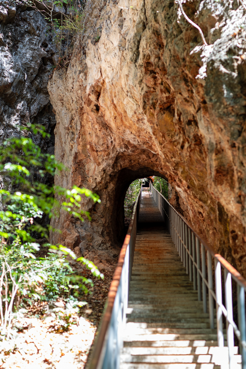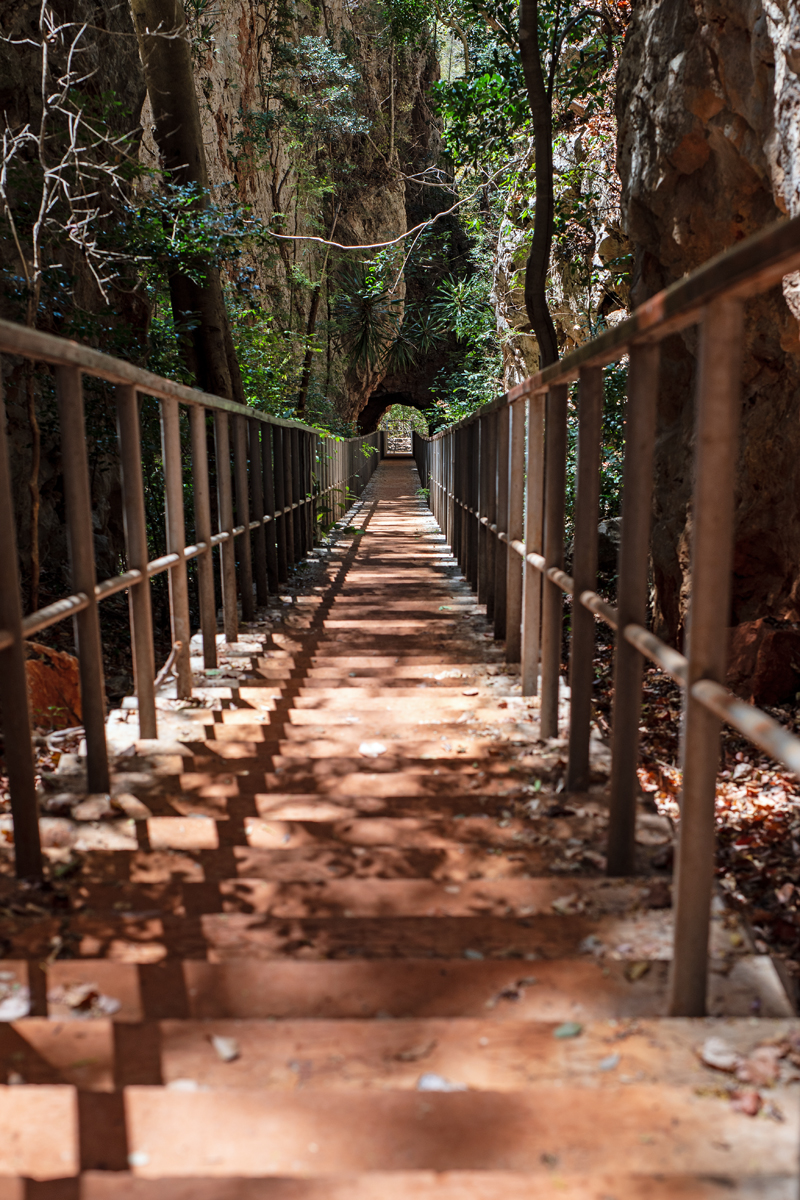 The French had installed a military base at the highest point of the massif from where they could spot every incoming ship from a great distance. Today there is an observation deck with a magnificent 360°-view, from the Indian Ocean to the Channel of Mozambique and from the forested hills of the Analamera Special Reserve to the barren mountains of the Cap d´Ambre, the northernmost point of Madagascar. You certainly need a firm state because of gale and hurricane-force winds constantly blowing over the exposed deck. As a result, photographers can happily leave their tripods at the hotel. Particularly impressive are the more than 600 steps on the final stretch up to the platform, where there once had been a freight elevator to provide for the men on top of the mountain.