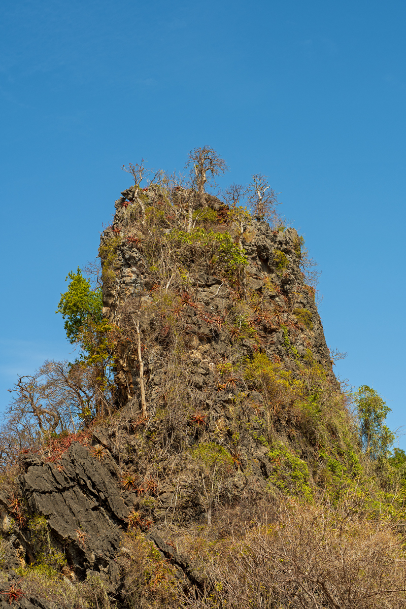 Between Antsiranana and the Indian ocean lies the “mountain of the French”, a 340-meter-high rock massif officially protected as a reserve since 2013. Even though it is not a big mountain range and despite its proximity to the city, the reserve is home to five species of lemur, 50 bird species, 40 species of reptile, frogs, chameleons and more than 240 different plants, among them some endemic ones. The reserve is home to some of the most famous specimen of the extremely rare and endangered Baobabs of the Adansonia suarezensis species growing right beside their relatives of the Adansonia madagascariensis species.