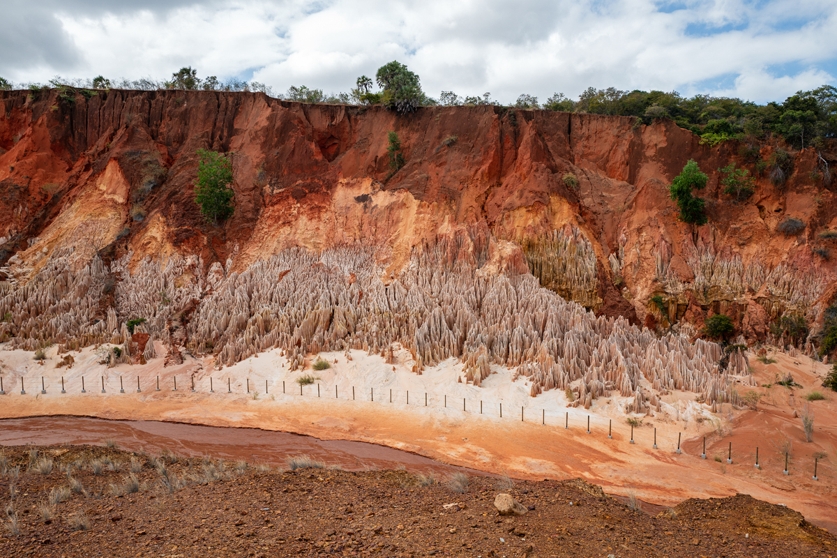 Die Tsingy rouge liegen südlich von Antsiranana (Diego-Suarez) und sind wie der Cirque rouge nahe Mahajanga und La Vallée im Ankarafantsika Nationalpark ein Produkt von Rodung sowie der daraus resultierenden Erosion und wurden erst in jüngerer Vergangenheit entdeckt. Die Formationen verändern sich mit jeder Regenzeit und werden wohl wie ihre südlicheren Pendants irgendwann vollständig weggewaschen. Vom Rand der Formationen aus Fels und Sand kann man sogar den nahen Indischen Ozean sehen, von wo die verheerenden tropischen Zyklone Anfang jedes Jahres auf die madegassische Ostküste treffen, an der Küste nagen und im Inland alles wegspülen, was nicht vom Wurzelwerk einer gesunden Vegetation zusammengehalten wird.