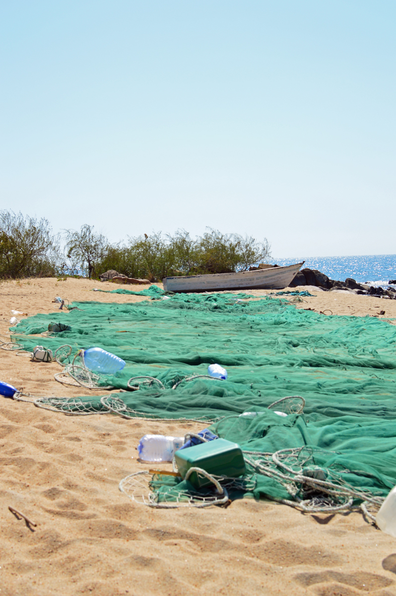 Malawian fishermen go far on the lake even at heavy swell. They fish with nets that are marked with empty bottles or cans. The work in the dugout canoes looks pretty risky, especially when standing up in the equally rough as narrow boat. Of course, the sail boats can go further, and they cooperate while fishing by running the lines with the nets from one boat to another. This is quite effective if there is a swarm of fish.