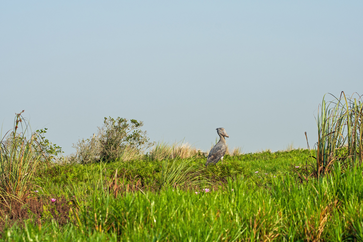 Lake Victoria is the second biggest freshwater lake on the planet with a size of 68.800 km². Parts of it belong to Kenya and Tanzania, but the biggest part is Ugandan. It is not only the source of the river Nile but also a source of food and work for around 30 million people living on its shores. And it is also home to a large number of animals, like the famous shoebill hunting the Mabamba wetland 15 km west of Entebbe for small lungfish, amphibians and even young birds.