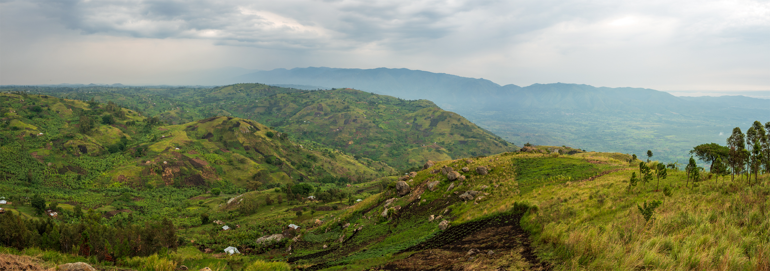 After the rain, of which there is a lot around Fort Portal, the track from Harugongo to the viewpoint is a challenge, to put it mildly. The nearly black volcanic soil is dense, heavy and fertile. There are coffee and tea plantations mixed with the small local farms as far as the eye can see. Equipped with a map and a guide book I was trying to find the way and explain it to Andrew, our driver, who didn´t know the place. We had decided against the experience of a Boda ride through the mud, because it had rained the whole night, and even on our way to the viewpoint, it started to drizzle regularly. That viewpoint is not well-known, not even in the surrounding villages but in the end, we managed to gently crash Andrew´s Toyota saloon car into the slope that finally led us to the viewpoint.