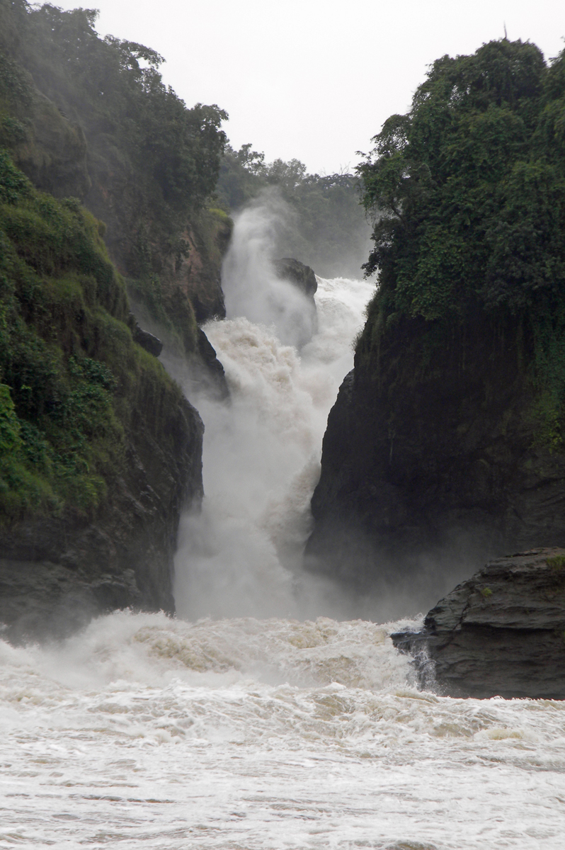 Die namensgebenden Wasserfälle sind besonders spektakulär, weil dort das Wasser des Victoria-Nils förmlich durch das Felsgestein hindurchexplodiert. Ich vermute, dass es genau das gewesen ist, was Ernest Hemingway hatte sehen wollen, als er 1954 mit einem Flugzeug die Fälle überflog. Am Ende erwischte er ein altes Telegraphenkabel, das über den Fluss gespannt war, und stürzte mit seiner Cessna in der Fajao-Schlucht ab. Als Belohnung erhielten er und seine Frau eine kostenlose Nacht im Urwald des Murchison NP. Kein schlechtes Geschäft, wie ich finde! Ein paar Jahre später brach sich das Wasser einer Flut einige Meter neben den Murchison-Fällen seinen Weg und formte die Uhuru-Fälle, die den Ort seither noch atemberaubender machen.