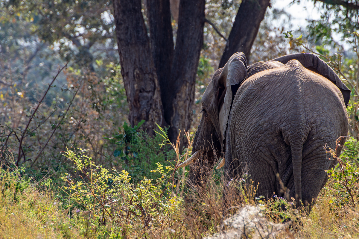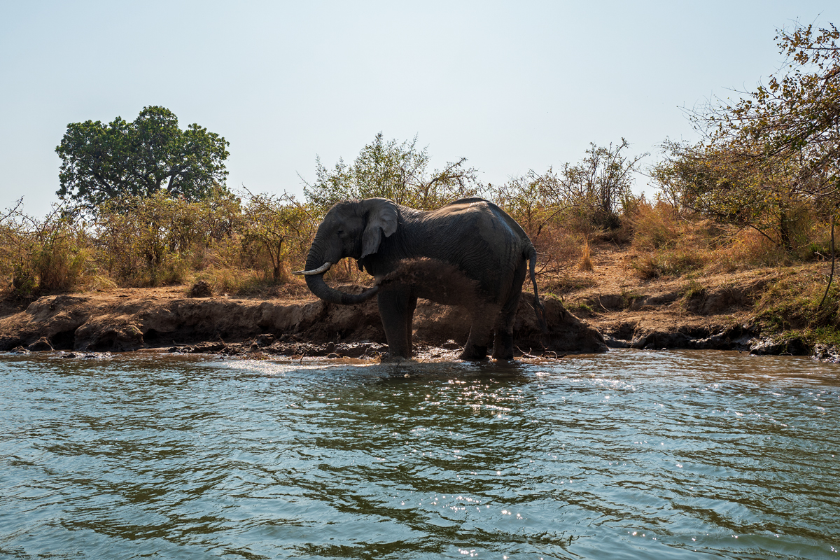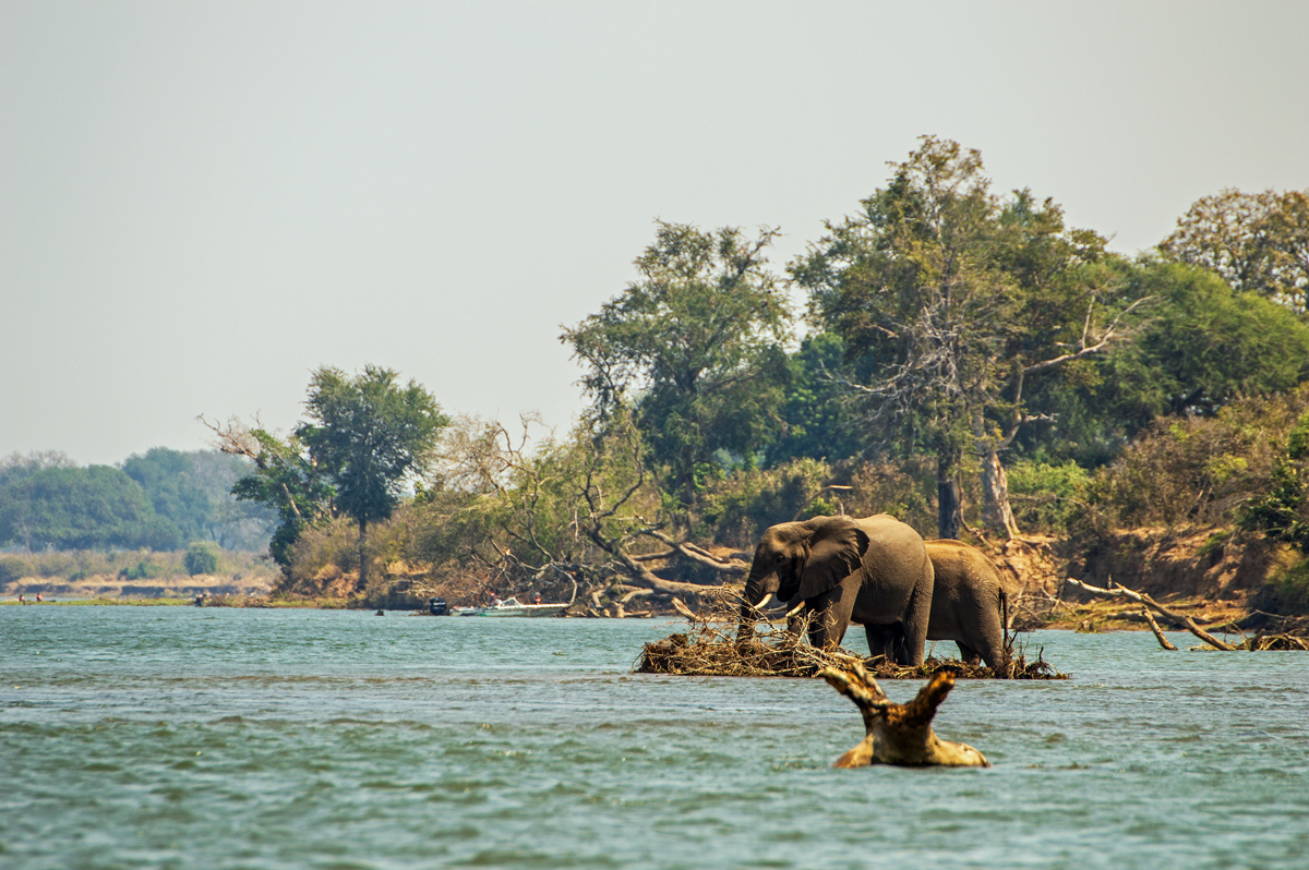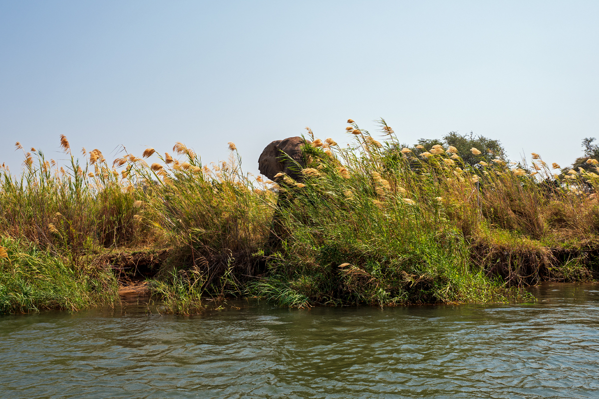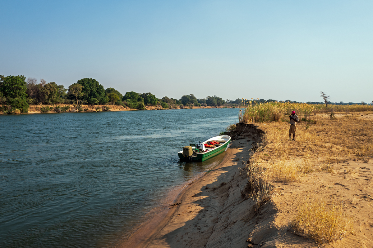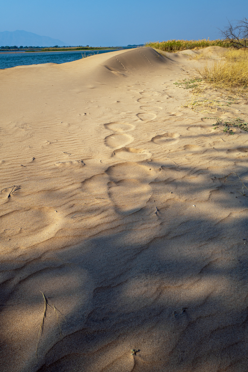 Die beste Art, die Lower Zambezi-Region zu erkunden, ist per Boot (vor allem, wenn alle Möglichkeiten, den Nationalpark zu besuchen, blockiert werden von gigantischen, italienischen Overlander-Gruppen, die sich auf Nationalpark-Hopping durch das ganze südliche Afrika befinden, 6000 Kilometer in zehn Tagen zurücklegen, gelangweilt sind vom 100. Flusspferd oder Elefanten und eine besonders exquisite Form der Ignoranz gegenüber den Menschen und Kulturen dort an den Tag legen). In der Trockenzeit müssen alle Tiere zum Trinken an den Fluss kommen, was ihn zum perfekten Ort für Tierbeobachtungen macht. Und manchmal hat man Glück, der Motor streikt und man strandet auf einer der kleinen Schilfinseln, wo man sogar noch die Elefantenspuren im weichen Sand sehen kann, was bedeutet, dass sie noch nicht allzu weit weg sein können. Wenn man die zahlreichen Südafrikaner, die oft betrunken in kleinen Booten zum „Angeln“ unterwegs sind und auf schmalen Sandbänken campieren mit Kühltaschen voll Bier, und die lautstarken italienischen Overlander-Gruppen mit ihren bemitleidenswerten südafrikanischen Fahrern, die sich freuen, mit irgendwem mal wieder Englisch sprechen zu können, ausblenden kann, dann ist die Region ein perfektes Stück ursprüngliche afrikanische Wildnis.