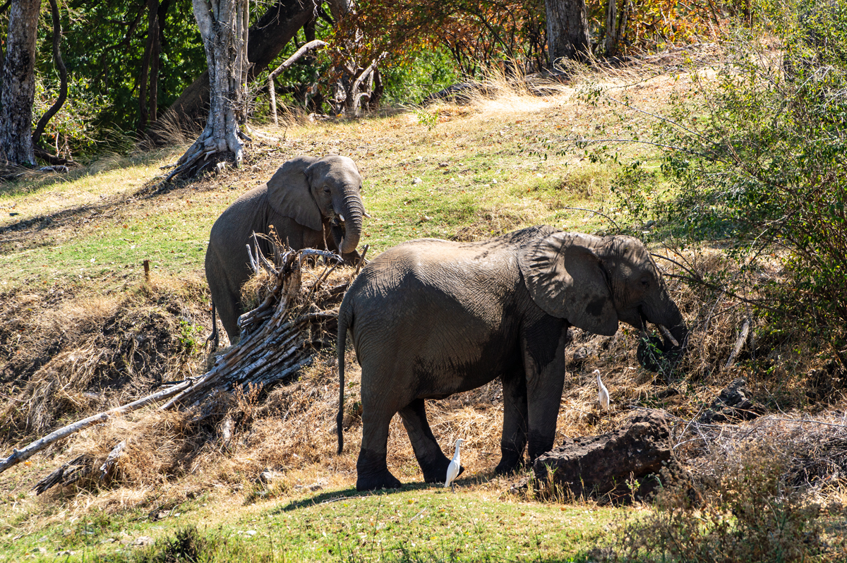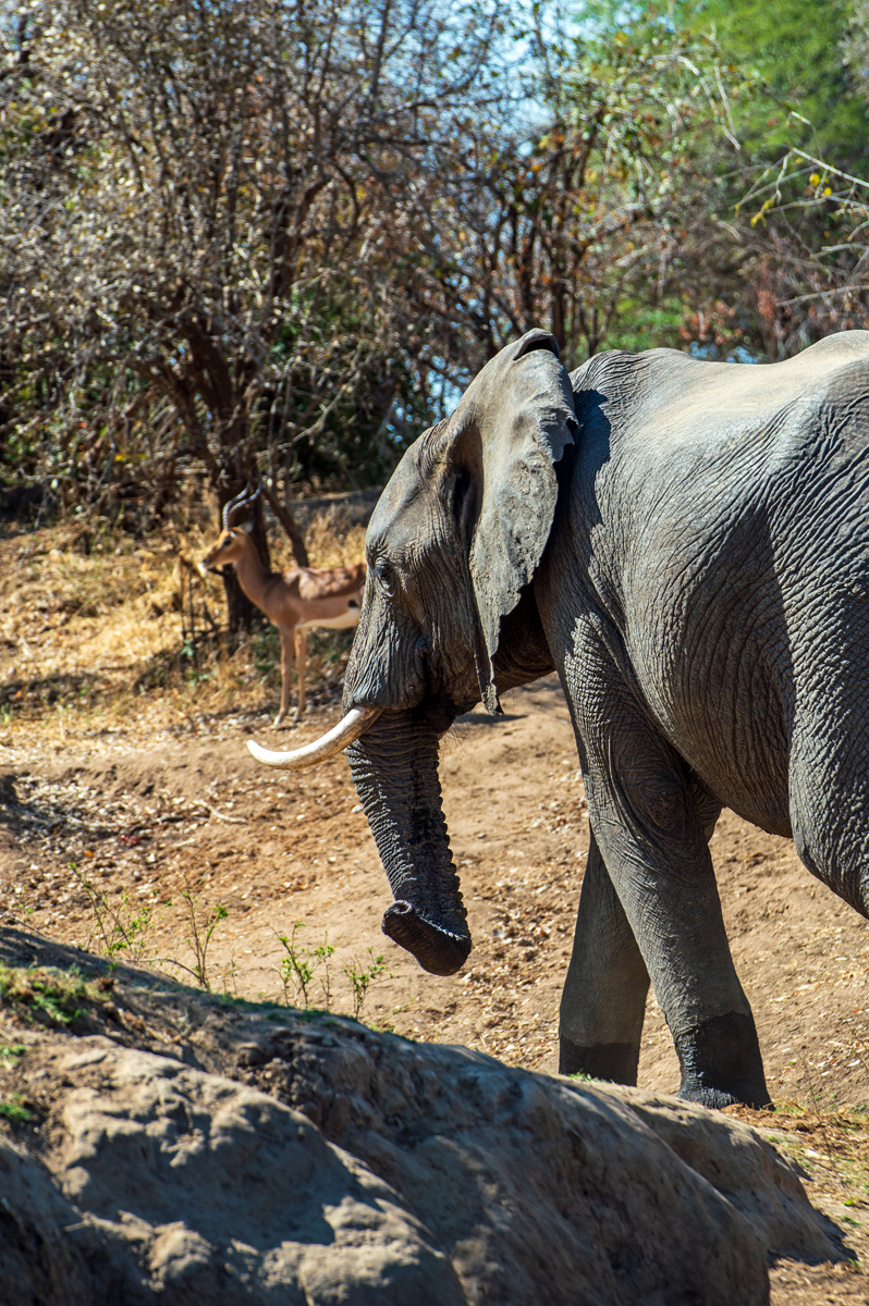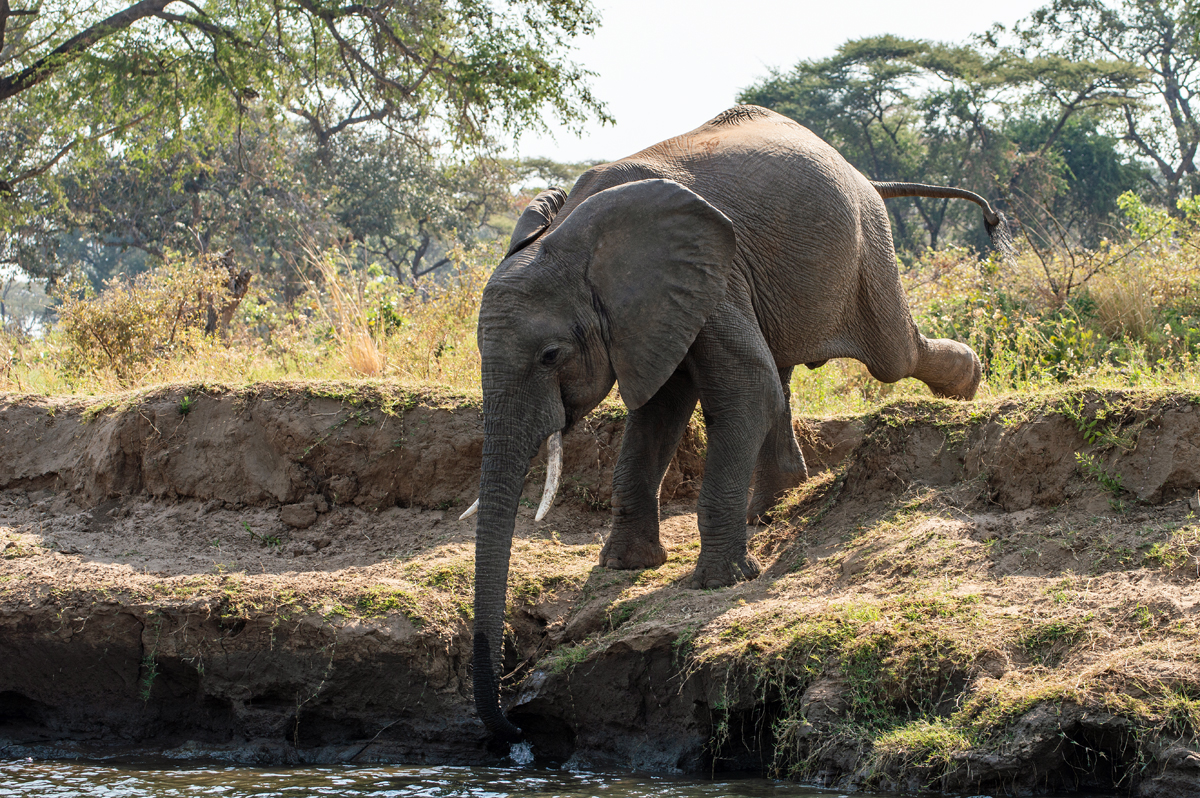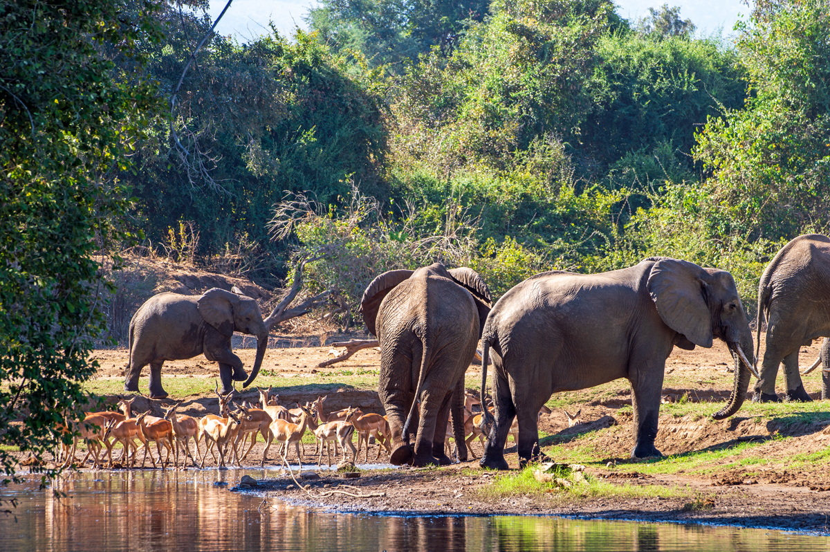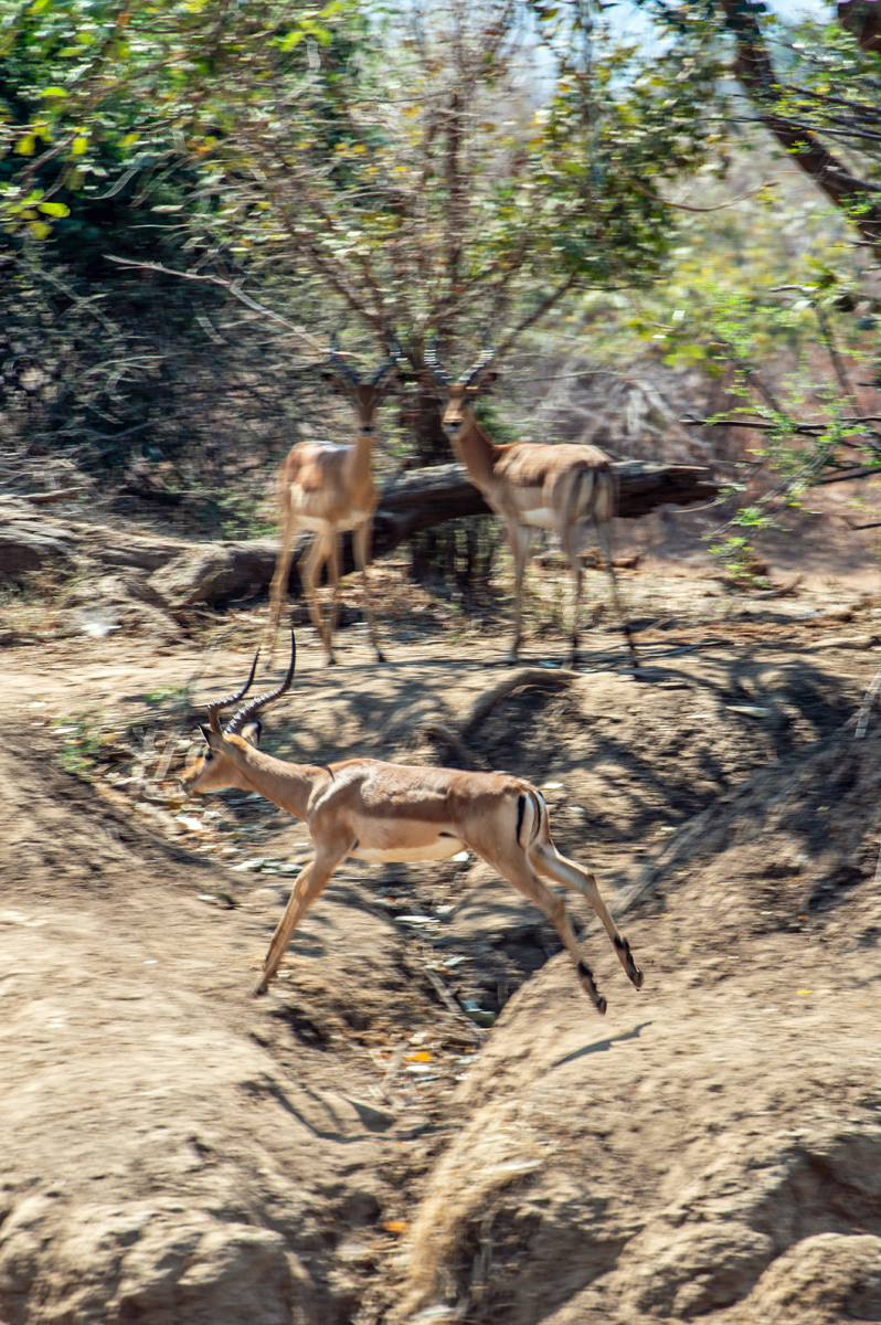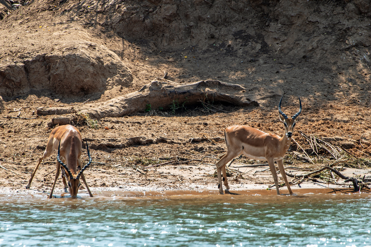 Die beste Art, die Lower Zambezi-Region zu erkunden, ist per Boot (vor allem, wenn alle Möglichkeiten, den Nationalpark zu besuchen, blockiert werden von gigantischen, italienischen Overlander-Gruppen, die sich auf Nationalpark-Hopping durch das ganze südliche Afrika befinden, 6000 Kilometer in zehn Tagen zurücklegen, gelangweilt sind vom 100. Flusspferd oder Elefanten und eine besonders exquisite Form der Ignoranz gegenüber den Menschen und Kulturen dort an den Tag legen). In der Trockenzeit müssen alle Tiere zum Trinken an den Fluss kommen, was ihn zum perfekten Ort für Tierbeobachtungen macht. Und manchmal hat man Glück, der Motor streikt und man strandet auf einer der kleinen Schilfinseln, wo man sogar noch die Elefantenspuren im weichen Sand sehen kann, was bedeutet, dass sie noch nicht allzu weit weg sein können. Wenn man die zahlreichen Südafrikaner, die oft betrunken in kleinen Booten zum „Angeln“ unterwegs sind und auf schmalen Sandbänken campieren mit Kühltaschen voll Bier, und die lautstarken italienischen Overlander-Gruppen mit ihren bemitleidenswerten südafrikanischen Fahrern, die sich freuen, mit irgendwem mal wieder Englisch sprechen zu können, ausblenden kann, dann ist die Region ein perfektes Stück ursprüngliche afrikanische Wildnis.