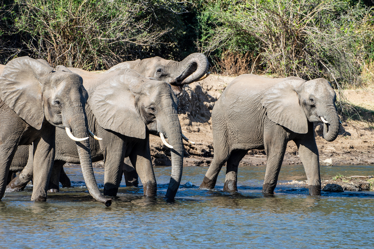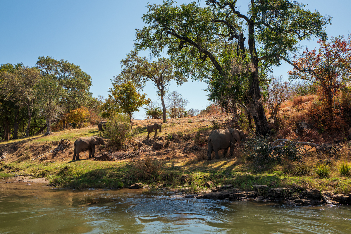 Abhängig vom Wasserstand gibt es zahlreiche schilfbewachsene Inseln, die bei Elefanten, die regelmäßig hinüberschwimmen, um sich am frischen Grün zu laben, äußerst beliebt sind. Darüber hinaus ist der Fluss gerammelt voll mit Flusspferden und mächtigen Krokodilen. Die Menschen, die hier leben, sind sehr arm, denn die Fischbestände nehmen aufgrund dauerhaft niedrigen Wasserstands sowie der Massen an Sportanglern aus Südafrika und von überall auf der Welt ab. Außerdem ist das Fischen durch die vielen Wildtiere nicht ungefährlich. Hinzu kommt noch, dass die Elefanten gern und regelmäßig auf den Feldern der Einheimischen vorbeischauen, um vom frischen Mais zu naschen.