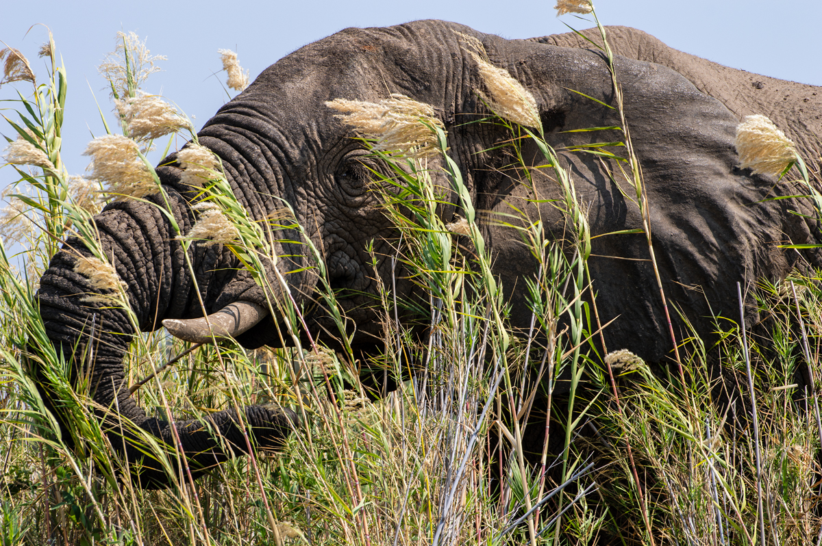 Depending on the water level, there are numerous reed islands which are very popular among elephants who swim there to feed on the fresh green food. The river is also full of hippos and huge crocodiles. People living there are very poor. Fish is getting rare because of all the sport fishermen from South Africa and the rest of the world, and it´s dangerous too because of the wildlife. On top of that, elephants tend to pay regular visits to the fields to nibble the maize.