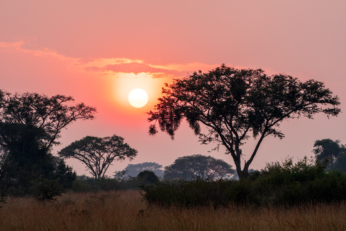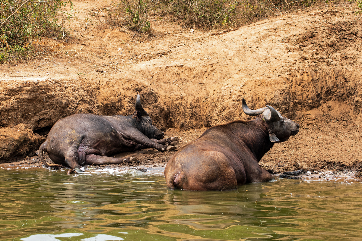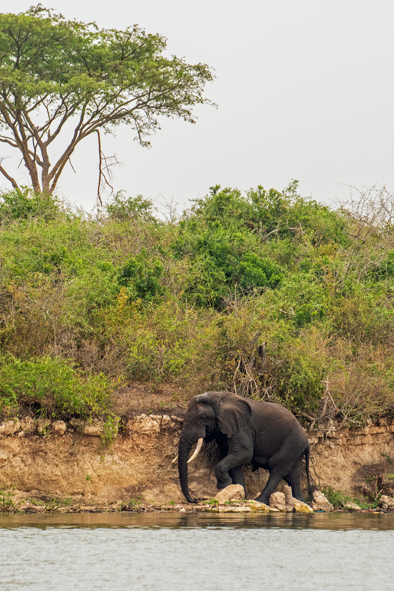 The Park protects swamps and savanna landscape as well as dense forests around Lake George and Lake Edward which are connected by the Kazinga channel. More than half of Lake Edward extends into the DR Congo, and in between the two lakes are numerous small crater lakes that bear testimony to the volcanic origin of the place. This wide range of habitats is the reason why Queen Elizabeth National Park is Uganda’s most diverse Park, even though it lacks zebra and giraffe. Therefor, there are vast numbers of antelopes and buffalos as well as elephants, lions and leopards, and more than 600 bird species call the region their home.
