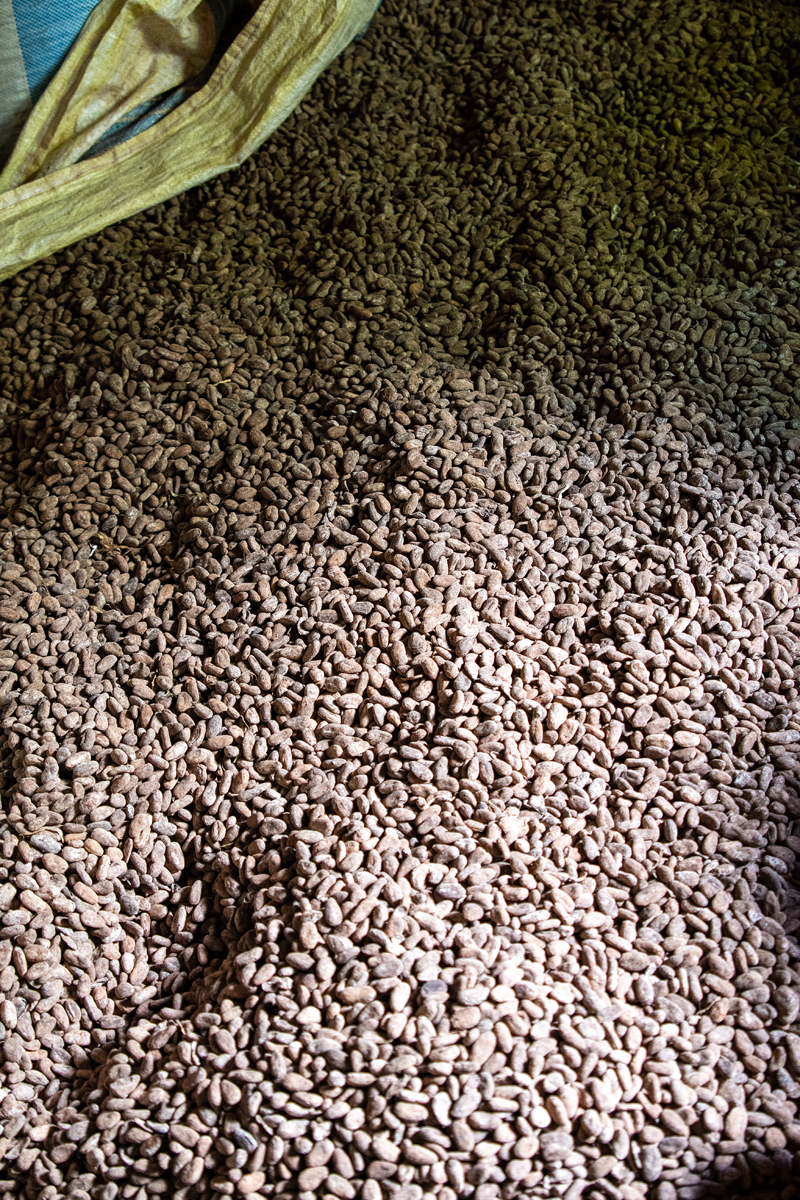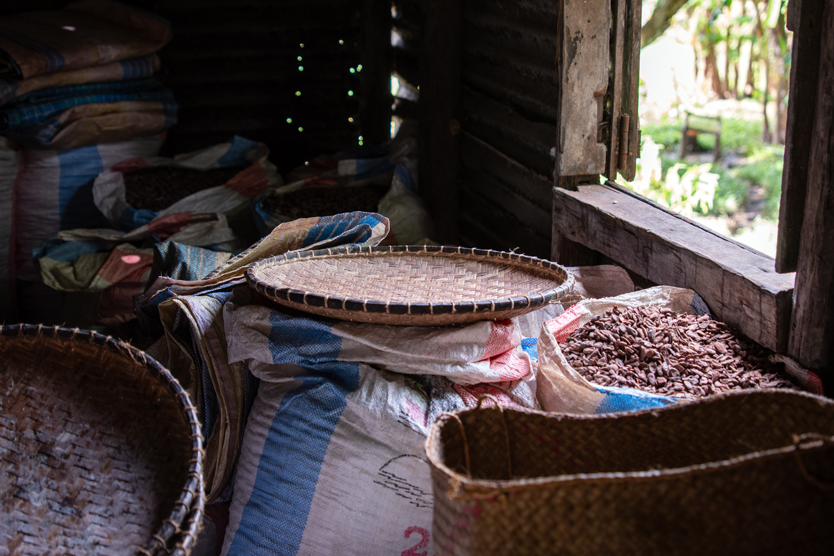Vola Maitso is a cooperative of farmers growing and selling cocoa, vanilla, pepper, cloves, coconuts, and fruits in a picturesque landscape a few kilometres north of Sambava. They practice a sustainable form of agriculture, combining the cultivation of different plants in an ecological way – without chopping off trees till there is nothing left. Unfortunately, the SAVA region in Madagascar´s northeast is also a victim of global climate change. This year had too much rain and too few sunny days, so the cocoa beans had to dry mainly in interior storage rooms which made them brighter than normal.