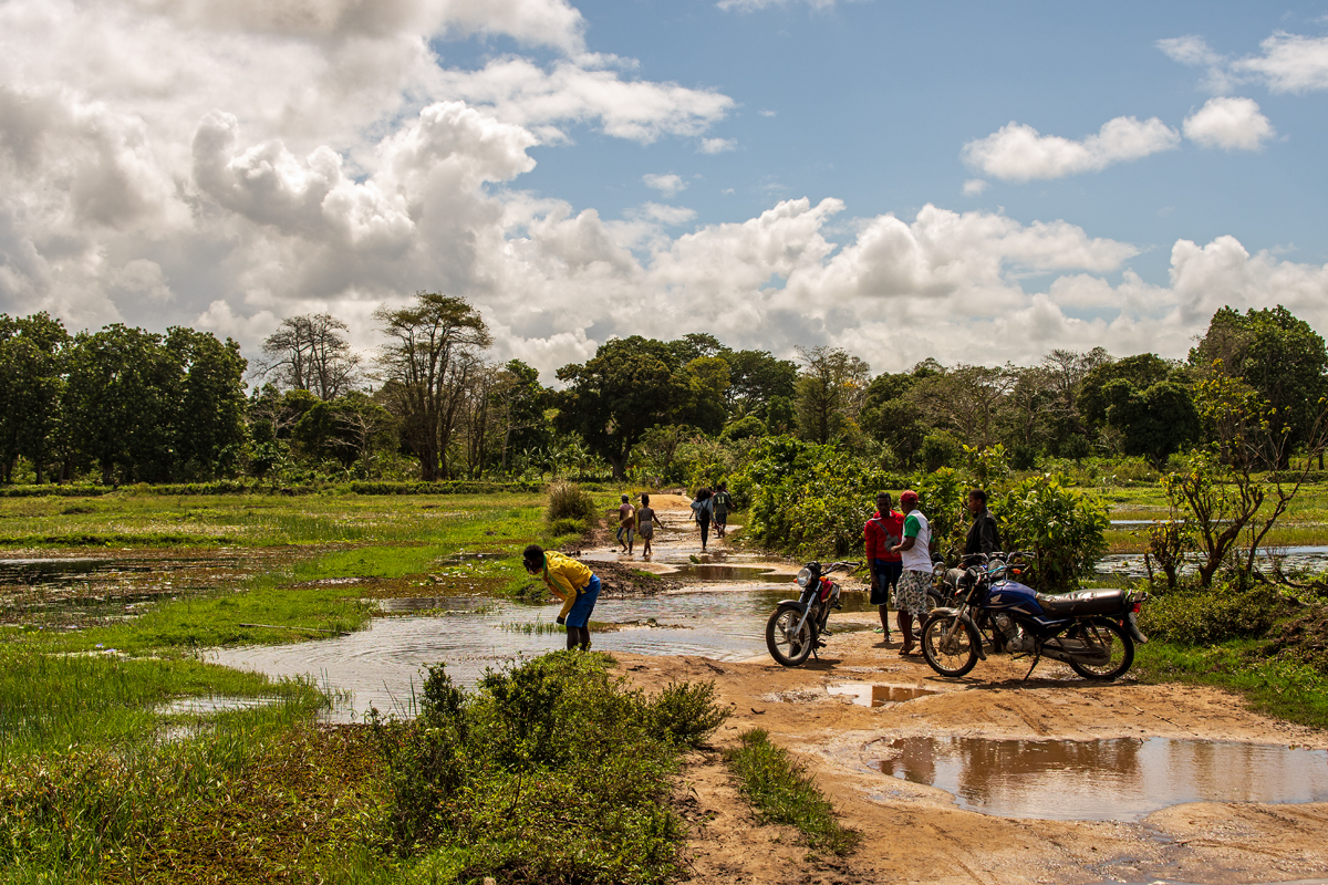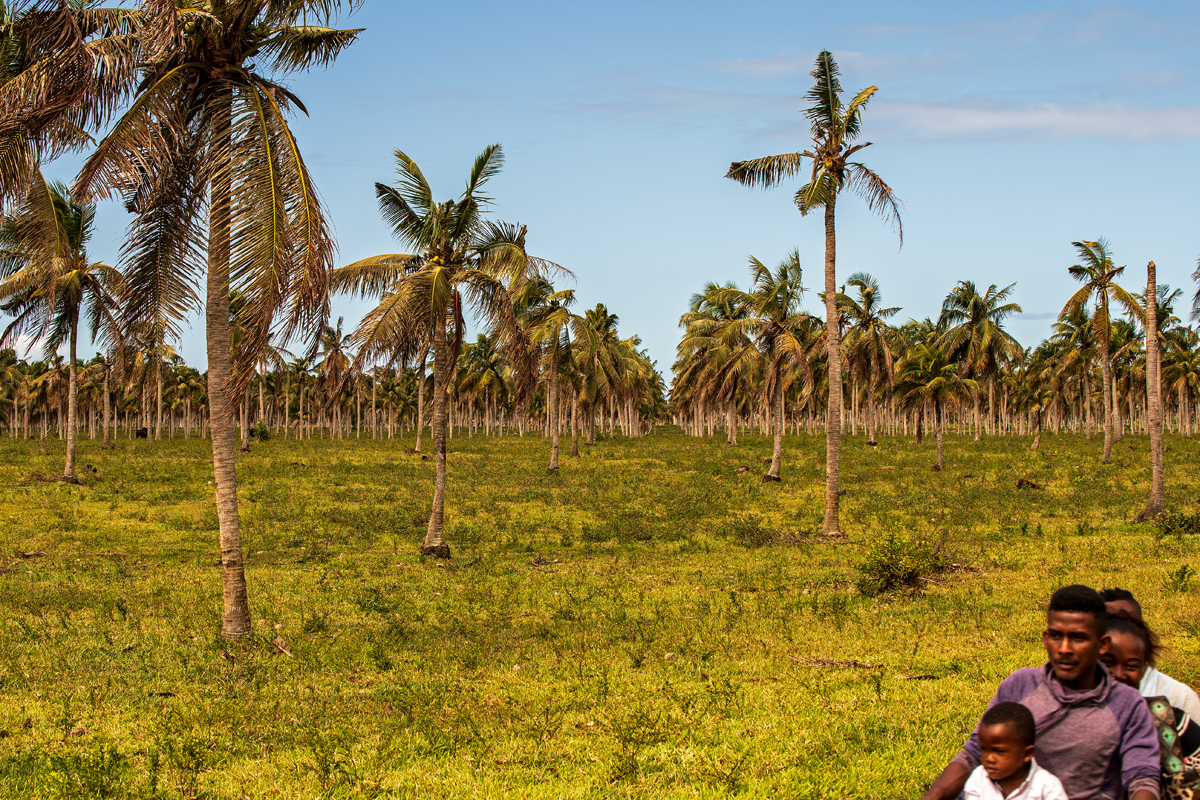 When returning from Vola Maitso to Sambava, one can take a pirogue on nearby Bemarivo river coming from Marojejy mountains in the west. On your way, you will pass the huge bridge with the road north to Vohemar as well as a sacred waterfall. In the end, the last kilometres through the vast Soavoanio coconut plantation will be covered best on a motorcycle serving as a taxi where cars would be in trouble driving.