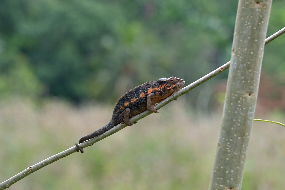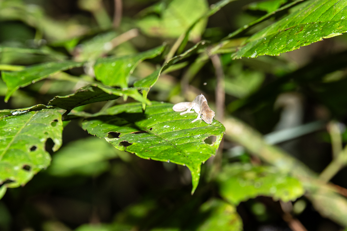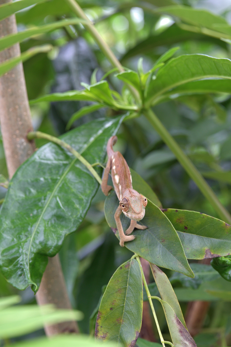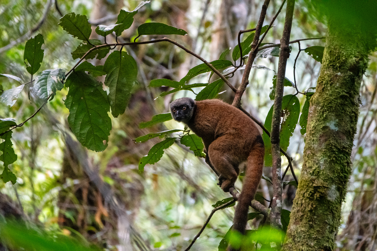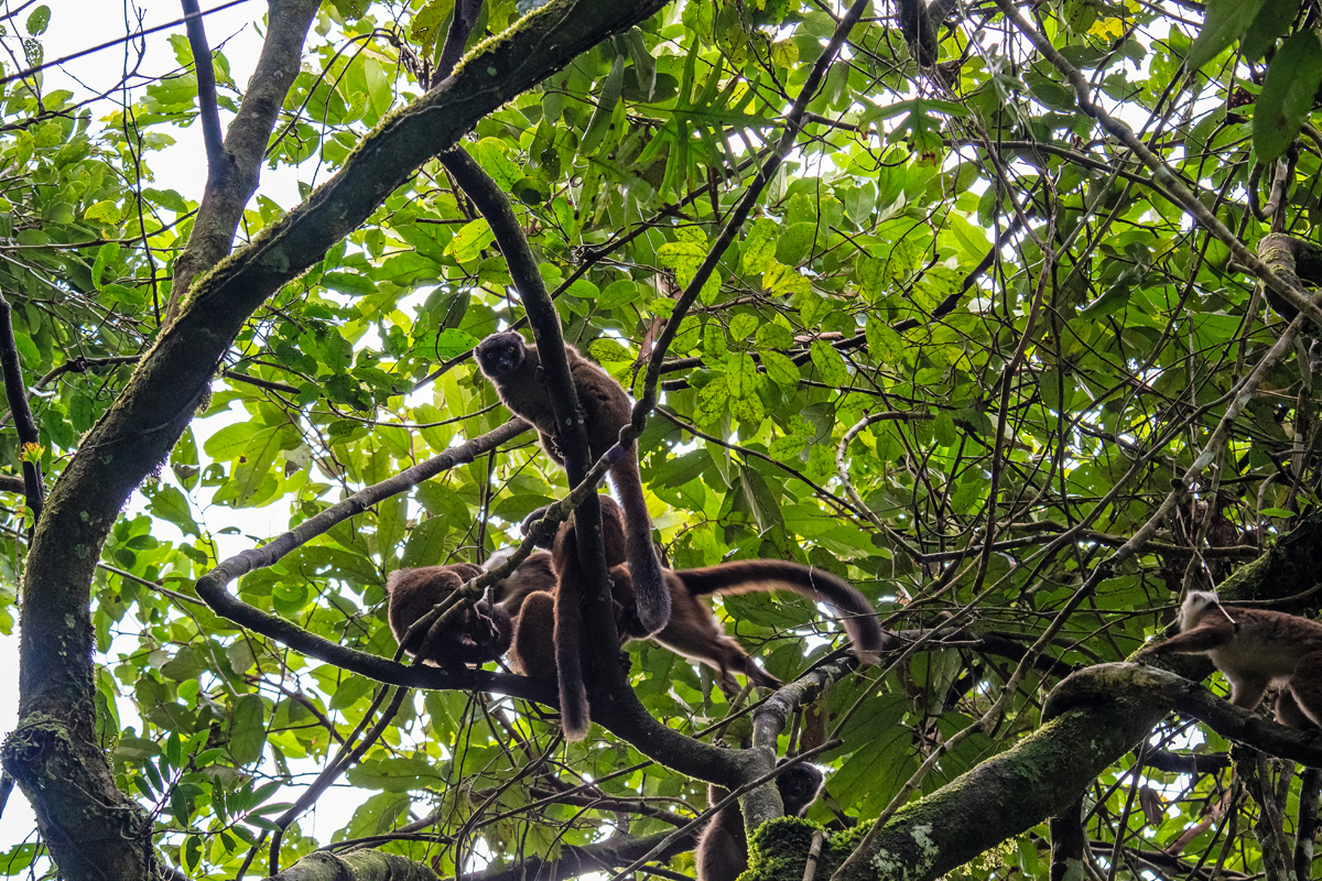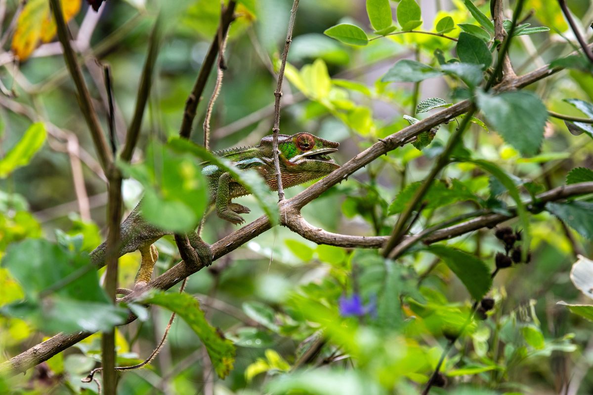 The hike from Camp Mantella up to Camp Marojejya at 775 m is a bit more exhausting, like climbing up a spiral staircase made of pudding. Sometimes, there are ropes or a few stones or even some stairs, but then again you must get a hold to the next root, branch or whatever won´t break under your weight. As I mentioned, you´re still, or again, wet, muddy, sweating and then drenched by tropical rain. But around Camp Marojejya, you might find Silky Sifakas with the help of some trackers. They belong to the most endangered primates on earth with only 249 mature individuals left as listed by the IUCN. The locals call them Angels of the forest. Besides them, White-fronted lemurs and countless chameleons call this area their home.