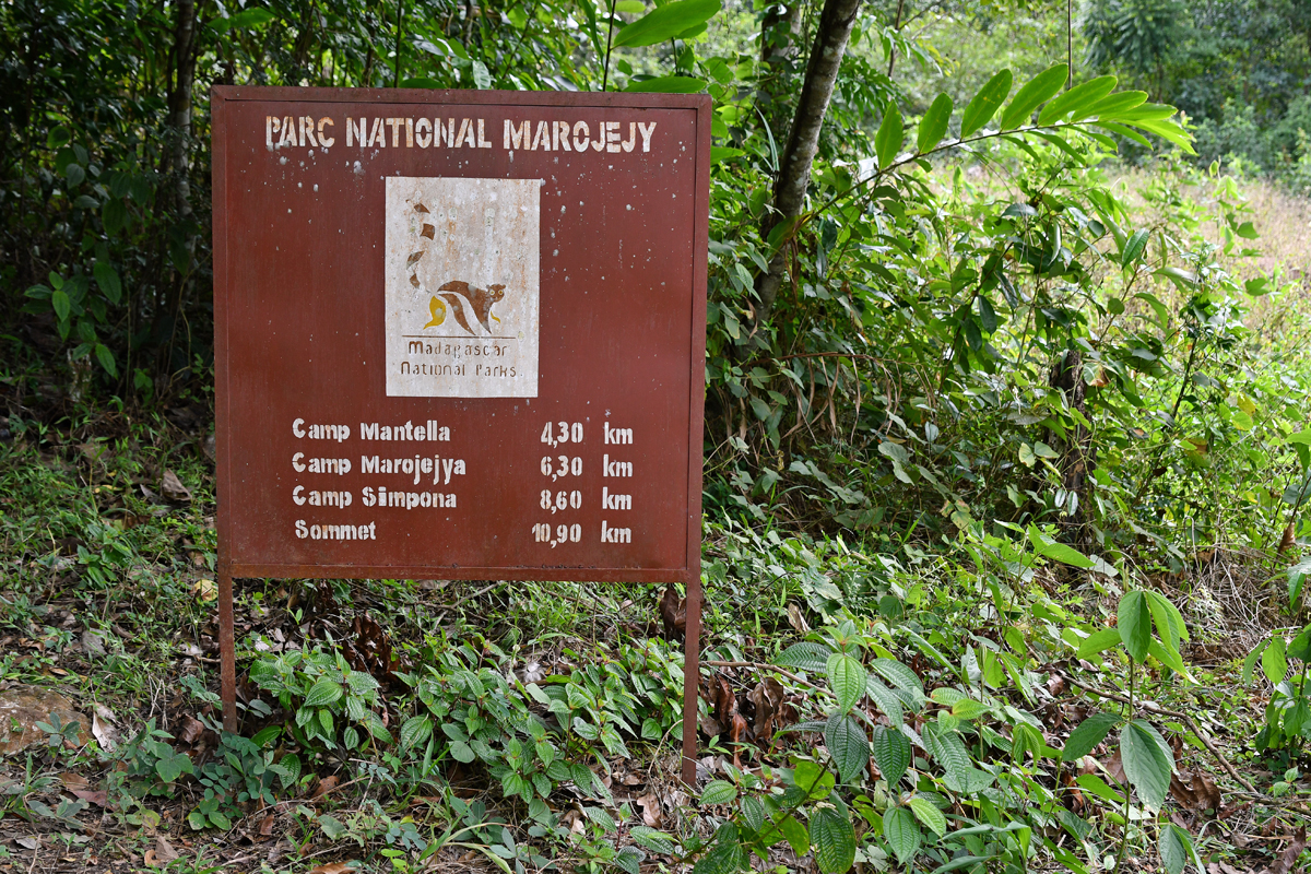 Es gibt nur einen Weg durch den Nationalpark, und der startet an der Nationalparkverwaltung direkt an der Straße von Sambava nach Andapa, bevor man an einem Fluss entlang durch die Dörfer Manantenina und Mandena kommt, aus denen die meisten Guides, Köche, Tracker und Träger stammen. Die Menschen dort bauen Reis und natürlich Vanille an. Vom Parkeingang auf 250 m Höhe führt der Weg durch beeindruckend schönen Regenwald und einzelne Bambuswald-Flecken, in denen der Östliche Bambuslemur und die Pill Millipedes leben. Das erste Camp, Camp Mantella, liegt in 425 m Höhe nahe des malerischen Humbert-Wasserfalls, und bis dorthin ist es eine zwar anstrengende, doch jederzeit genussvolle Wanderung, auch wenn man permanent nass und schlammbedeckt ist. Nachts kann man um das Camp herum Deinopis madagascariensis, eine Kescherspinne, Bombardier-Käfer oder auch putzige Mausmakis entdecken.