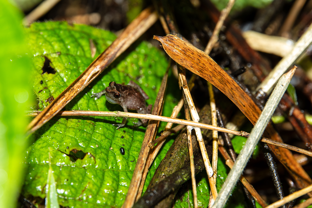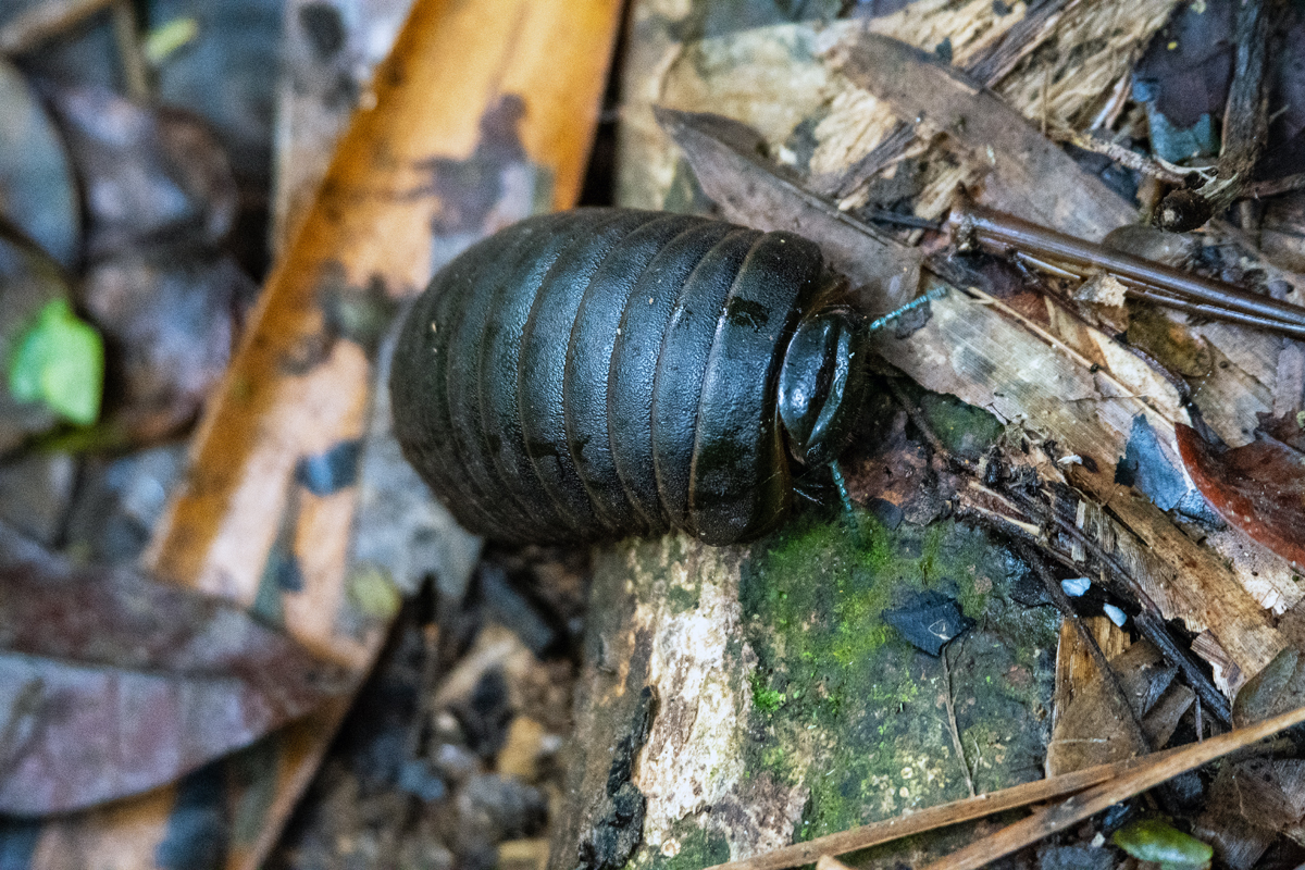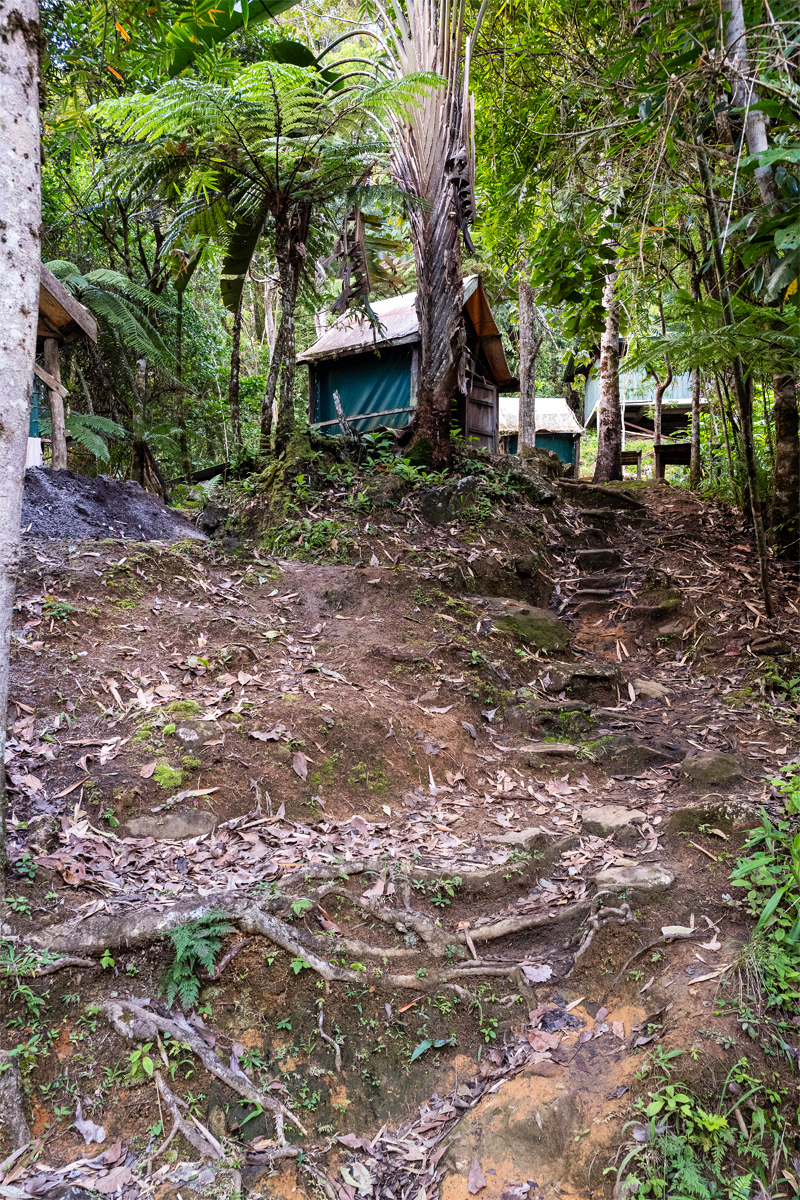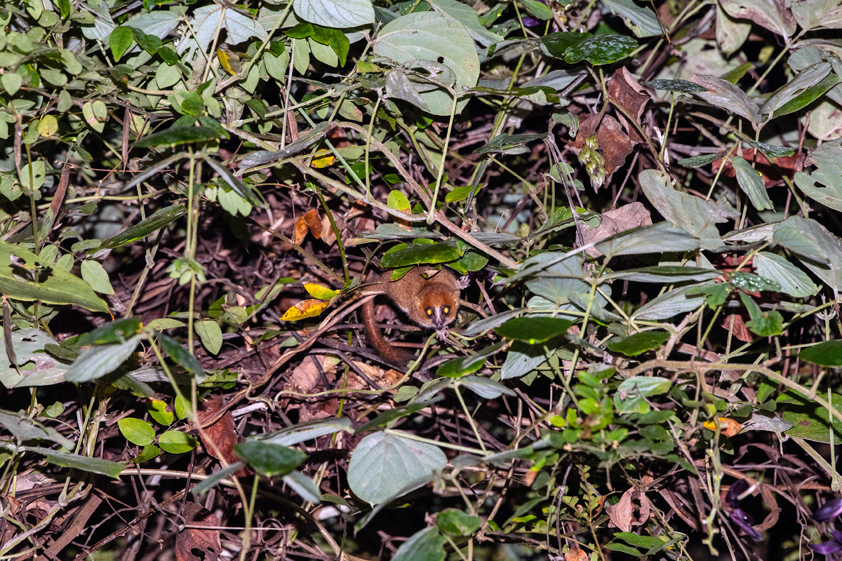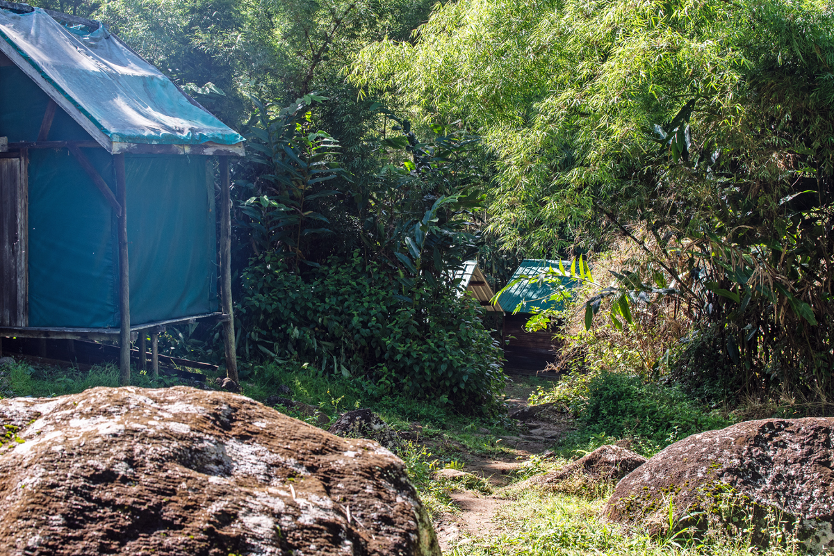 There is only one trail through the park, starting at the park headquarter right at the road from Sambava to Andapa before you´re walking alongside a river and through the villages of Manantenina and Mandena, where most of the guides, cooks, trackers, and porters come from. The people there are growing rice and, of course, vanilla. From the park entrance on 250 m elevation, the trail leads through the most stunning tropical rainforest and patches of bamboo forest where one can find Eastern lesser bamboo lemur or Madagascan Giant Emerald Pill Millipedes. The first camp, Camp Mantella, lies on 425 m near picturesque Humbert waterfall, and up to this point, the walk is a strenuous but enjoyable hike, even though you´re wet all the time and covered in mud. At night around Camp Mantella, you might be able to spot Deinopis madagascariensis, a net-casting spider, Bombardier beetles or one of the cute mouse lemurs.