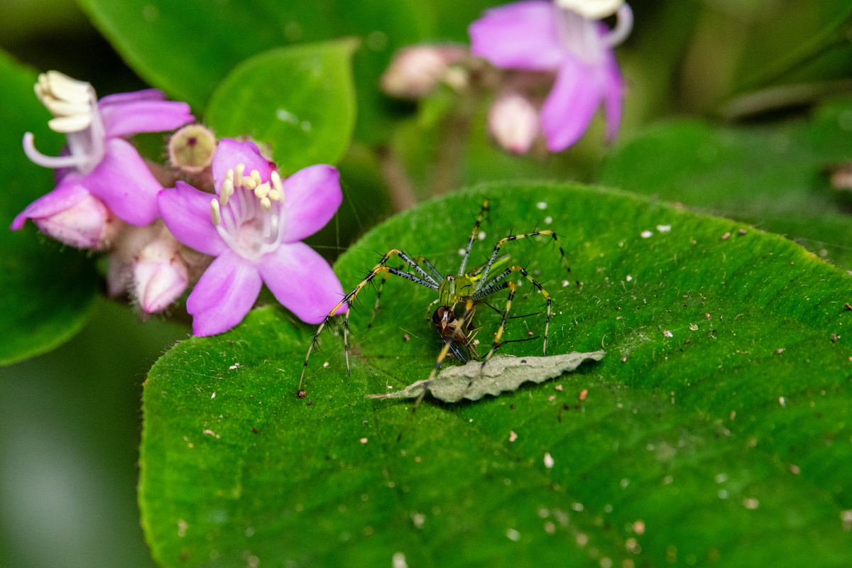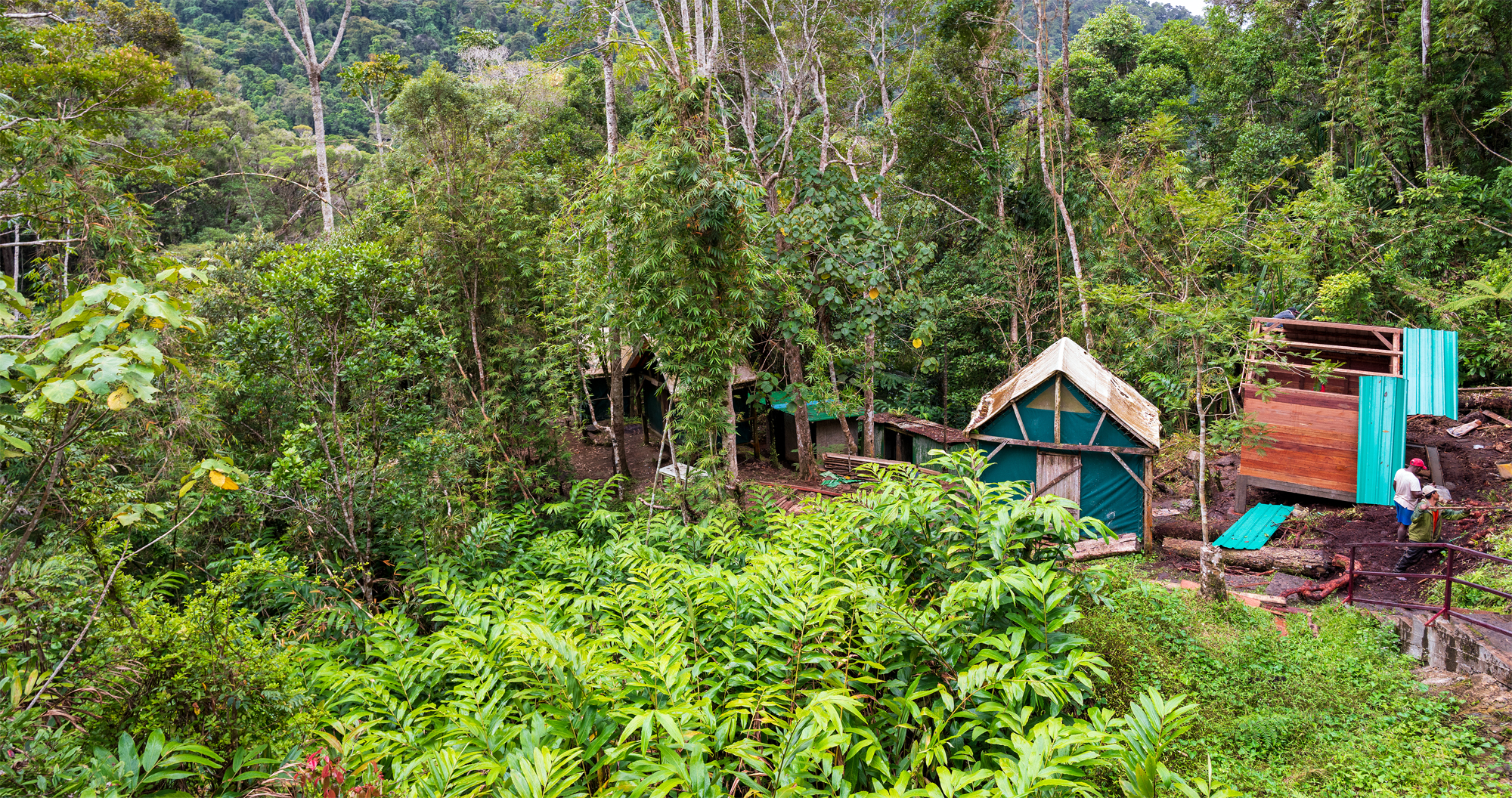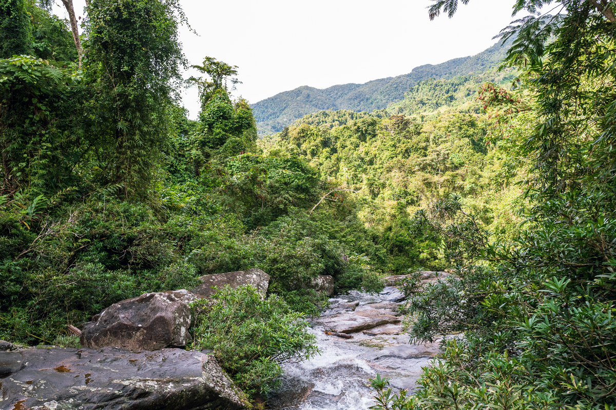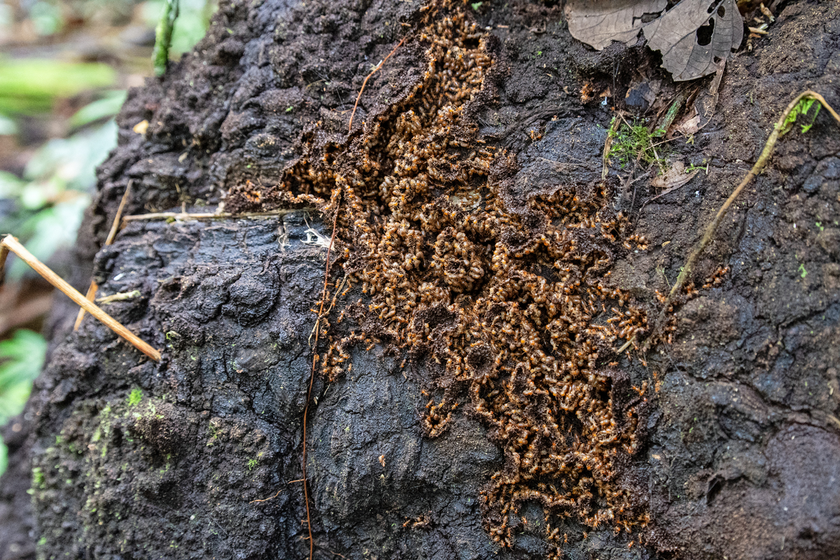 There is only one trail through the park, starting at the park headquarter right at the road from Sambava to Andapa before you´re walking alongside a river and through the villages of Manantenina and Mandena, where most of the guides, cooks, trackers, and porters come from. The people there are growing rice and, of course, vanilla. From the park entrance on 250 m elevation, the trail leads through the most stunning tropical rainforest and patches of bamboo forest where one can find Eastern lesser bamboo lemur or Madagascan Giant Emerald Pill Millipedes. The first camp, Camp Mantella, lies on 425 m near picturesque Humbert waterfall, and up to this point, the walk is a strenuous but enjoyable hike, even though you´re wet all the time and covered in mud. At night around Camp Mantella, you might be able to spot Deinopis madagascariensis, a net-casting spider, Bombardier beetles or one of the cute mouse lemurs.