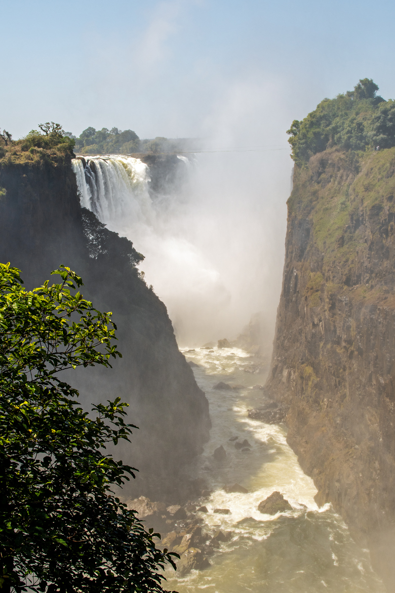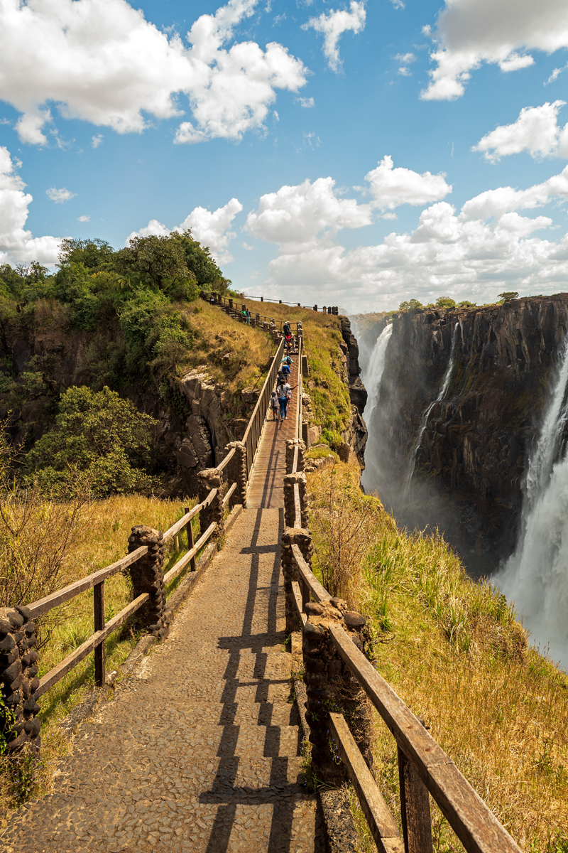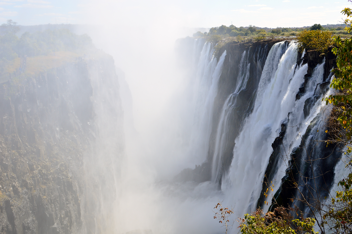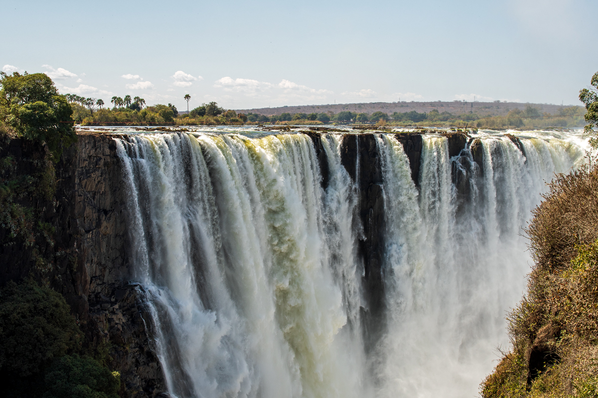 Wenn der mächtige Sambesi an den Victoria-Fällen auf einer Breite von 1.688 Metern bis zu 108 Meter in die Tiefe stürzt, dann hat er von seiner Quelle im äußersten Nordosten Sambias bereits 1.440 Kilometer durch Sambia und Angola zurückgelegt und noch knapp 1.300 Kilometer bis zum Mündungsdelta am Indischen Ozean (Kanal von Mosambik) in Mosambik vor sich. Er ist damit der viertlängste Fluss Afrikas und der bedeutendste Strom im Süden des Kontinents.