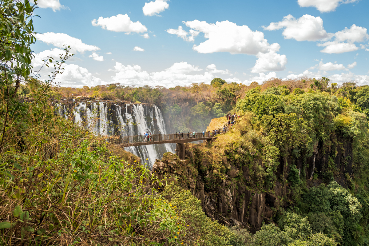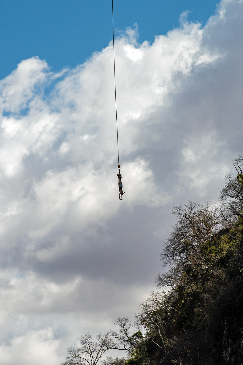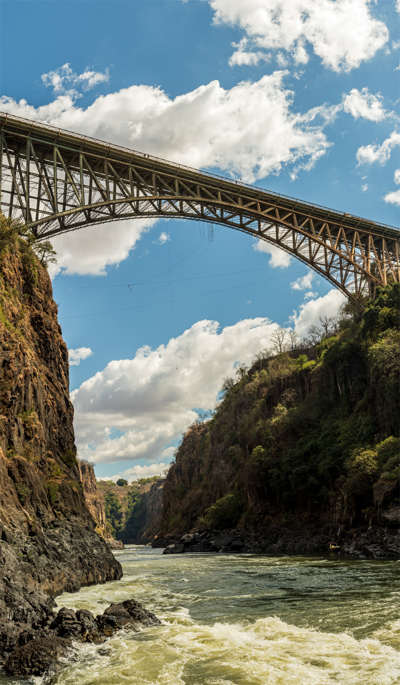 Vielfältige touristische Angebote warten auf der Brücke nach Simbabwe auf die Besucher, die mit einem kostenlosen Gate-Pass ohne Visum von sambischer Seite aus betreten werden kann. Im Minutentakt stürzen sich die zumeist jüngeren Adrenalin-Junkies am Bungee-Seil in die Schlucht, einer der tiefsten Sprünge seiner Art weltweit. Darüber hinaus stehen Rundflüge über den Fällen hoch im Kurs, wahlweise in einem Hubschrauber oder einem Leichtbauflugzeug, oder man kann sich beim White Water Rafting körperlich betätigen. Doch den krönenden Adrenalinschub bekommen vermutlich nur die, die mutig genug für den waghalsigen Gorge Swing sind, bei dem man sich von einer Seite in die Schlucht stürzt und bloß von einem einzelnen Seil getragen zur anderen Seite herüberpendelt.