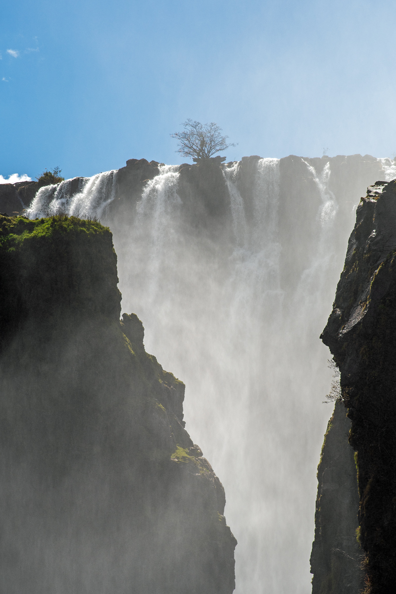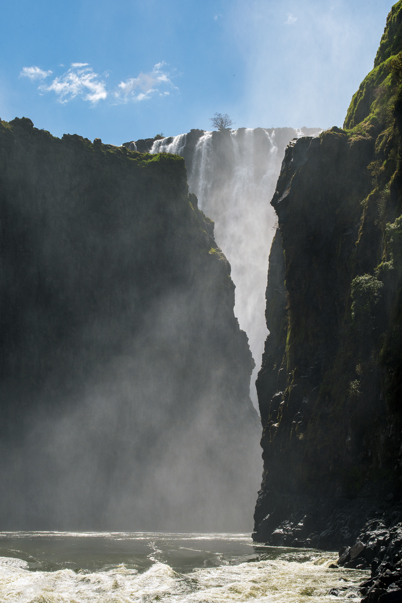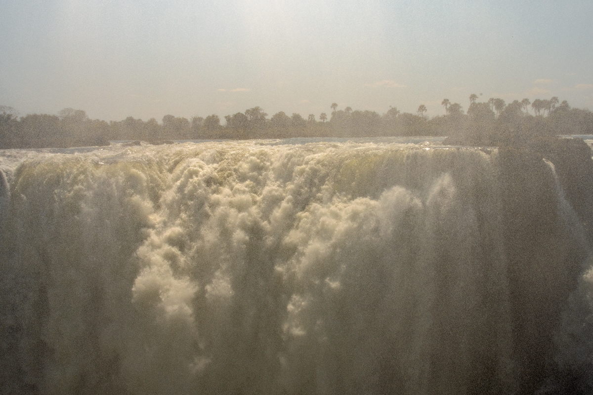 The Boiling Pot is waiting at the end of the Palm Grove trail, and it is the most impressive of all places around the falls where you are very close to the narrow gorge and the rumbling waters. Below the famous bridge to Zimbabwe is the place to stay and for being overwhelmed, close to the river and amidst vertical rock faces, over-grown and bright and green.