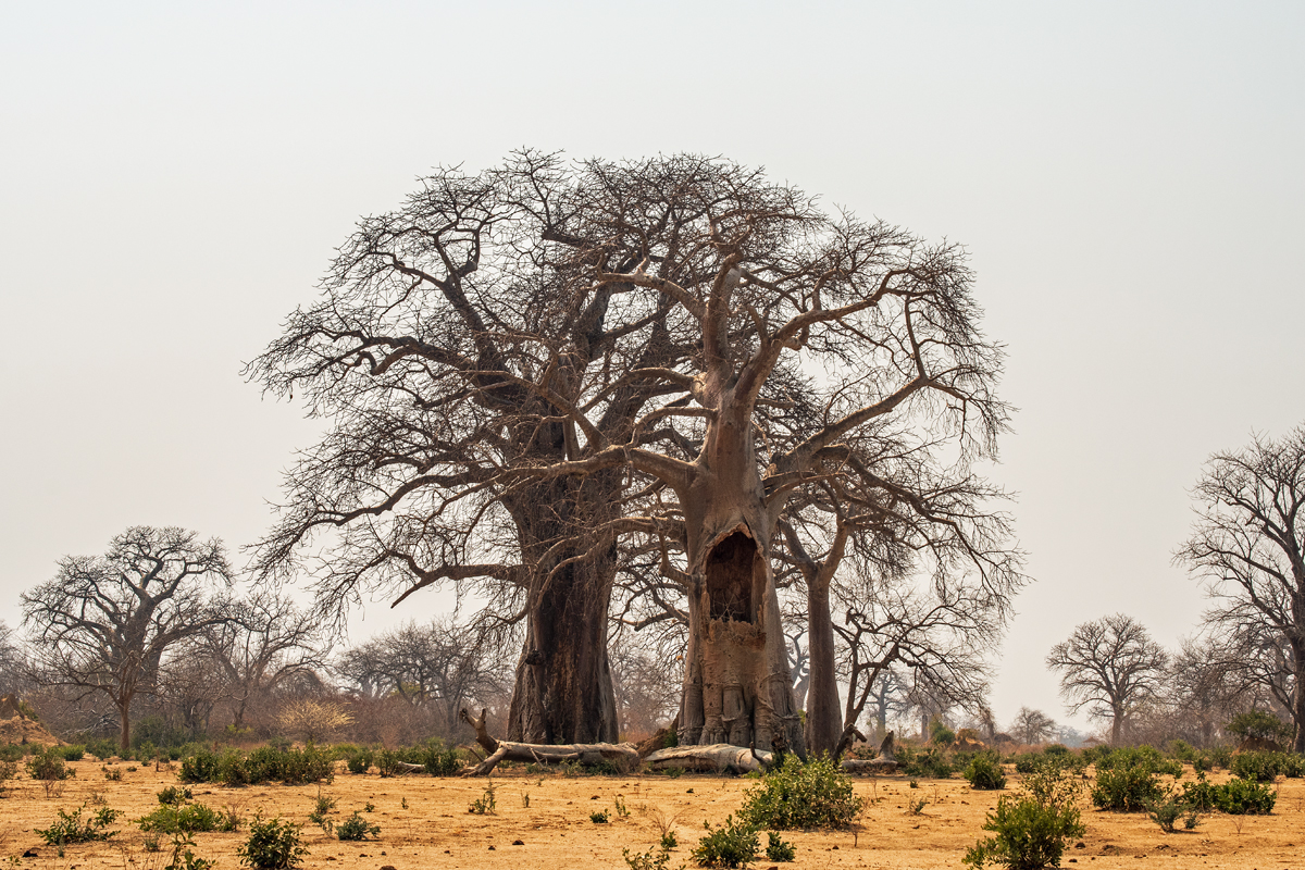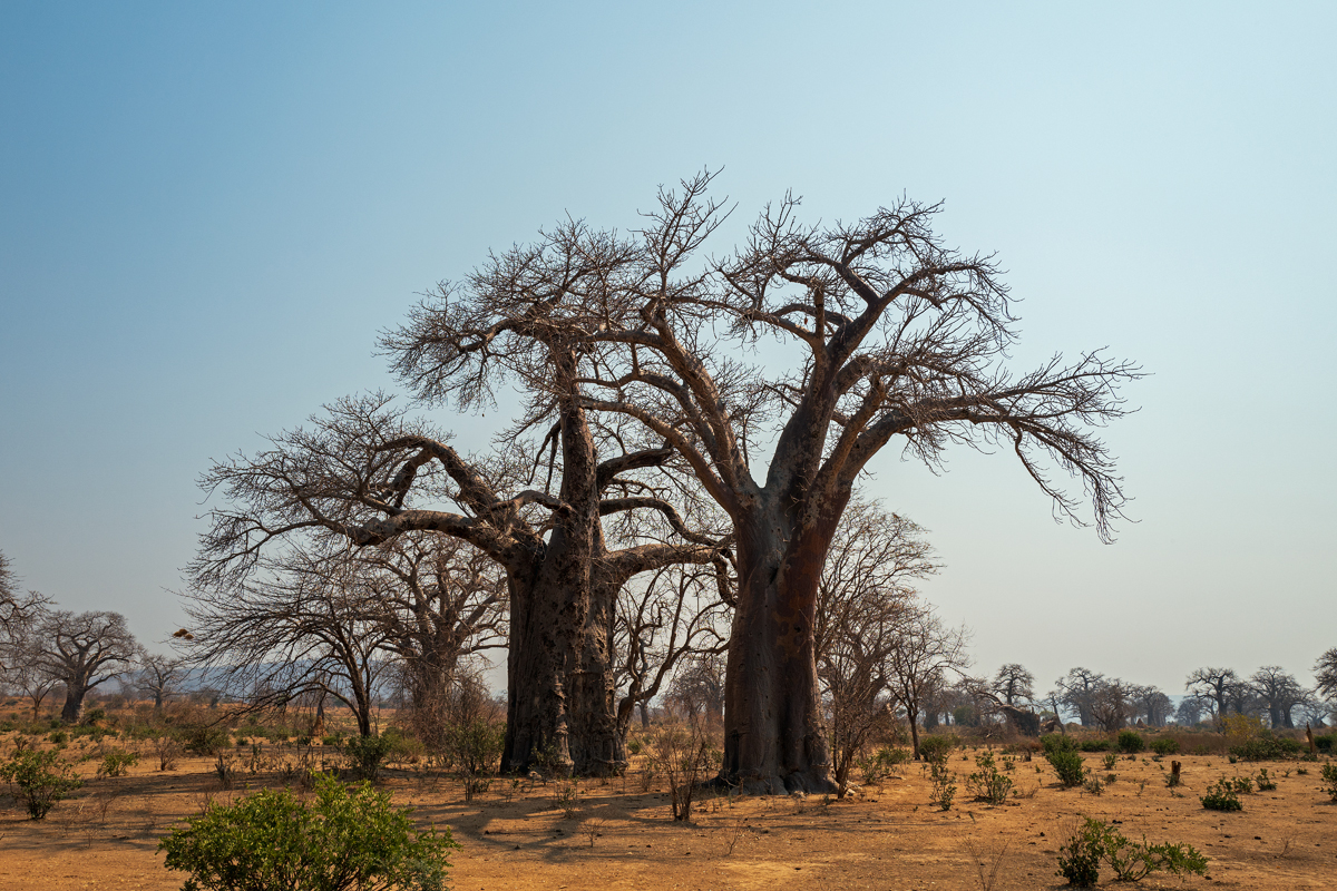 Zwischen Kafue und dem Kariba-See wird das Klima heißer und trockener, die Vegetation verändert sich, und mehr und mehr Baobabs tauchen am Straßenrand auf. Und nur etwa 13 Kilometer nach dem Abzweig in Richtung Siavonga geht eine Piste zu den Überresten eines Eisenzeitdorfes ab, und bereits wenige Hundert Meter von der Straße entfernt steht man inmitten von etwas, dass man nur als Baobab-Wald bezeichnen kann. Gigantische, Jahrhunderte alte Baobabs soweit das Auge reicht, in der Trockenzeit in goldgelbem Gras, recken ihr Wurzelgeflecht-ähnliches Geäst in den blauen Himmel. Während man genüsslich das Limonaden-süße Fruchtfleisch von den Kernen einer Baobab-Frucht lutscht, fragt man sich unweigerlich, ob man sich nicht vielleicht gerade in eine urzeitliche Welt verirrt habe.