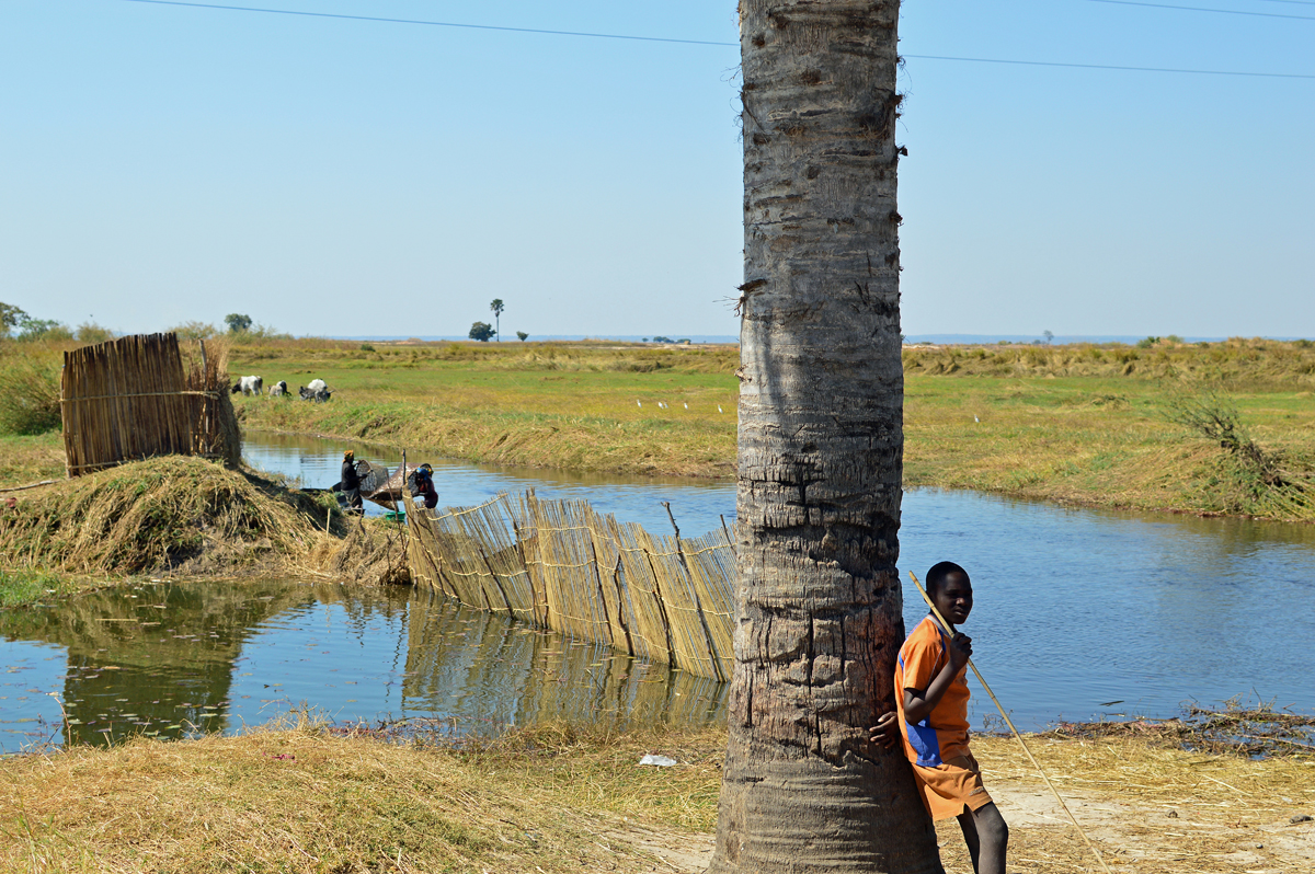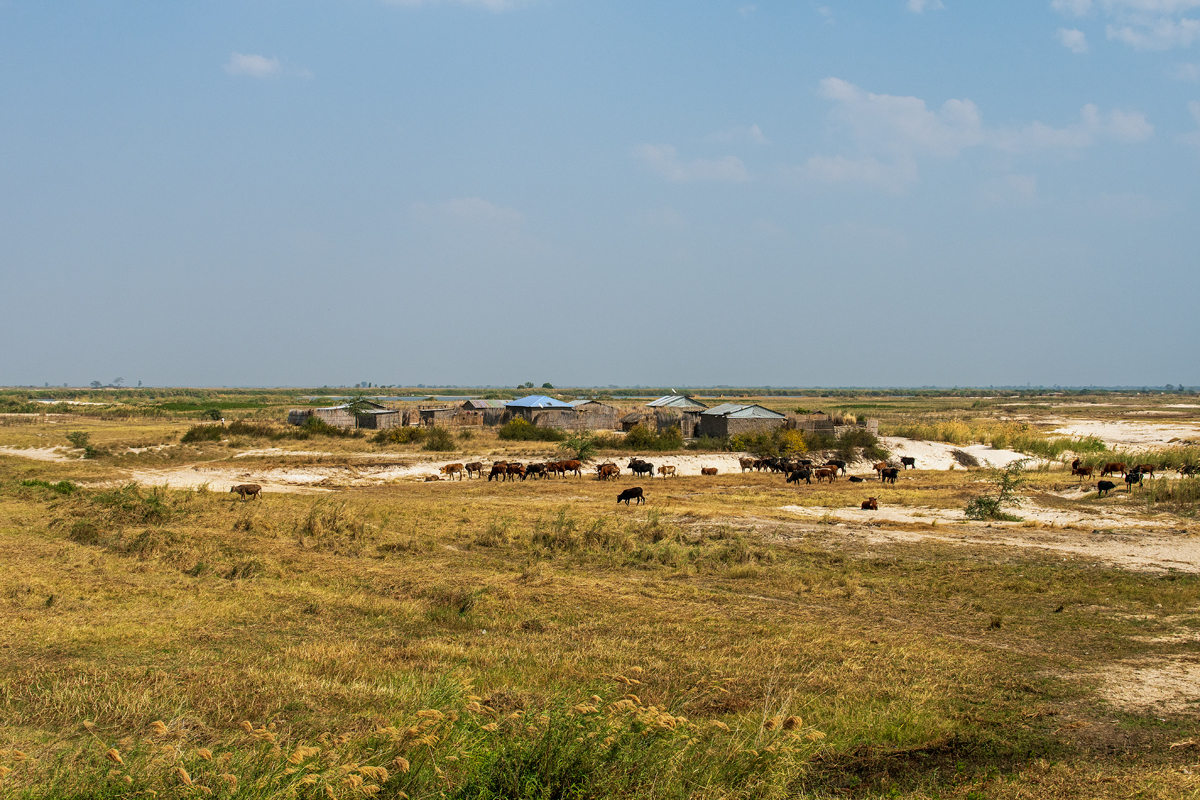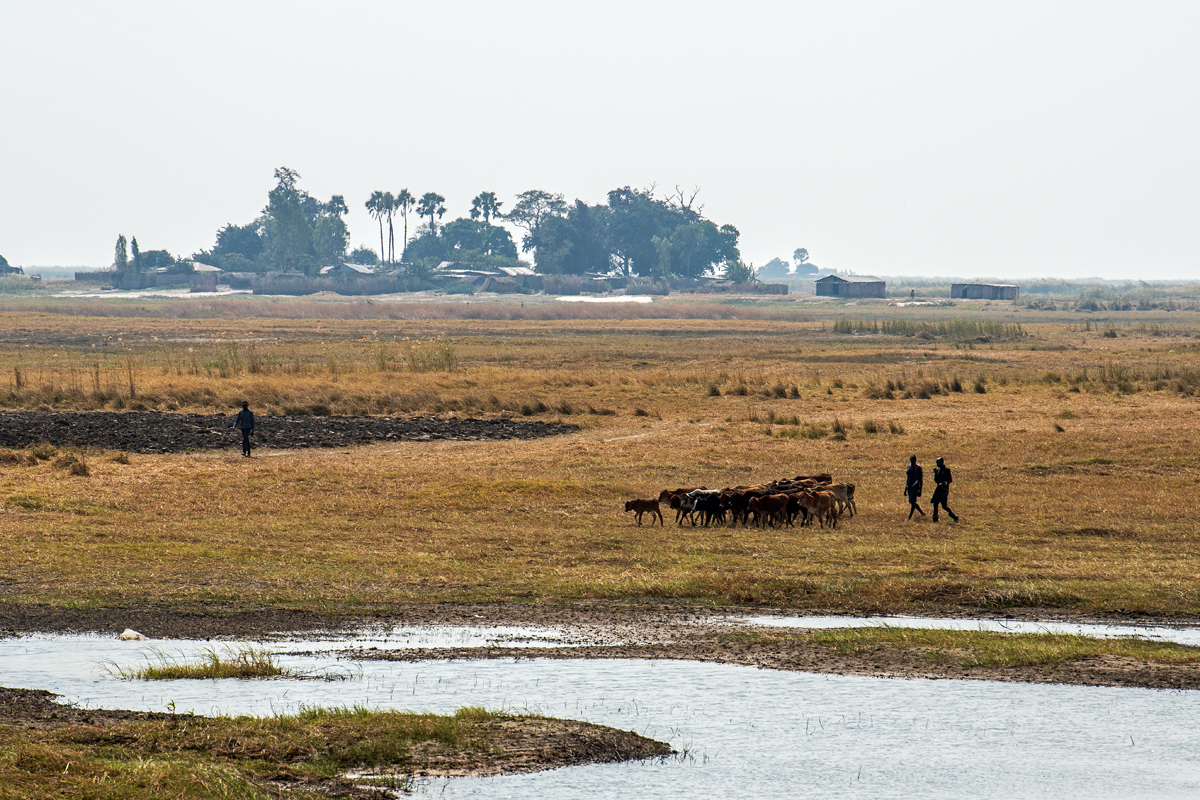 The floodplains along Zambezi River in Zambia’s west are vast plains that get flooded for a few months every rainy season between April and June or July. Clusters of trees mark slightly higher ground, and those are the places the Lozi people use to build their small settlements. It is a remarkable fact that flooding helps people with their trading because they can use boats. During dry season, there are only canals left making especially the way to Mongu, the official capital of the Barotseland province, quite lengthy. That´s why the Chinese have built a road through the floodplains in the recent years which now connects Mongu with the settlements at the floodplains. They have also built an impressive bridge over Zambezi River connecting both sides where there now is a market selling fish and some other stuff and working as a transport hub for small boats bringing people up and down the river. Lozi people are pastoralists. They move around in small groups or families and live a semi nomadic life. Furthermore, they do a little farming during dry season, and they hunt for fish in the canals and ponds and, of course, in the Zambezi.
