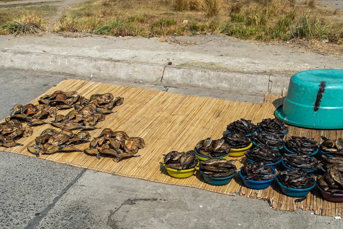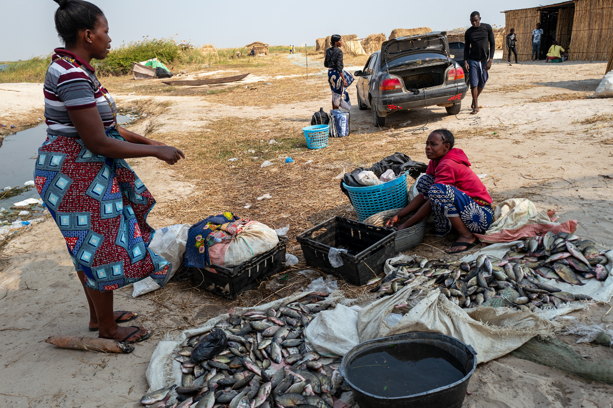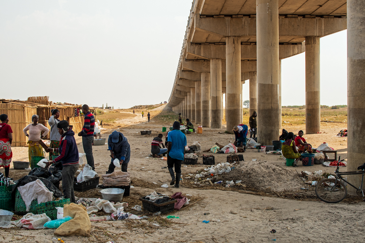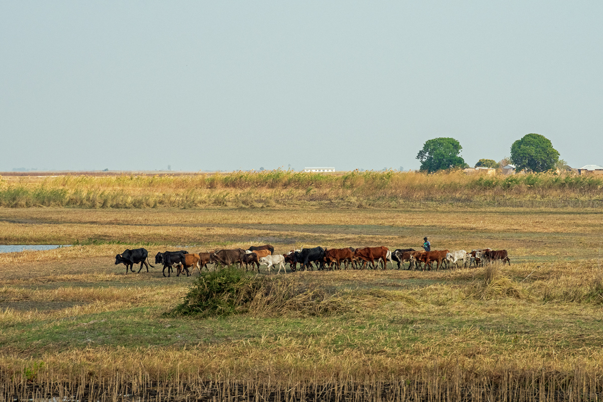 The floodplains along Zambezi River in Zambia’s west are vast plains that get flooded for a few months every rainy season between April and June or July. Clusters of trees mark slightly higher ground, and those are the places the Lozi people use to build their small settlements. It is a remarkable fact that flooding helps people with their trading because they can use boats. During dry season, there are only canals left making especially the way to Mongu, the official capital of the Barotseland province, quite lengthy. That´s why the Chinese have built a road through the floodplains in the recent years which now connects Mongu with the settlements at the floodplains. They have also built an impressive bridge over Zambezi River connecting both sides where there now is a market selling fish and some other stuff and working as a transport hub for small boats bringing people up and down the river. Lozi people are pastoralists. They move around in small groups or families and live a semi nomadic life. Furthermore, they do a little farming during dry season, and they hunt for fish in the canals and ponds and, of course, in the Zambezi.