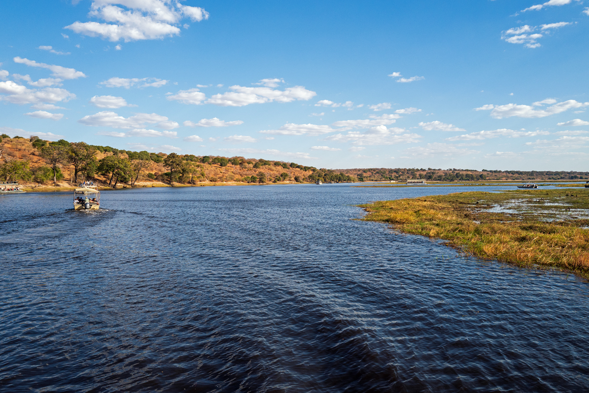 Der Chobe-Fluss fließt durch den Norden Botswanas und bildet dort die Grenze zur Zambezi Region in Namibia (früher: Caprivi-Streifen) und Sambia, bevor er schließlich am Vierländereck von Botswana, Namibia, Sambia und Simbabwe bei Kazungula in den Sambesi mündet. Unter dem Namen Cuando entspringt er im Hochland Angolas, von wo aus er sich auf seine insgesamt 1.500 Kilometer lange Reise Richtung Südosten macht, schließlich Namibia durchquert und ab den gleichnamigen Sümpfen im Nordwesten Botswanas Linyanti genannt wird. Dort macht er eine scharfe Kurve gen Osten, wo er nochmals den Namen wechselt und nach Passieren des Liambezi-Sees Chobe heißt. Das Gebiet markiert die nördliche Grenze des berühmten Okavango-Deltas.