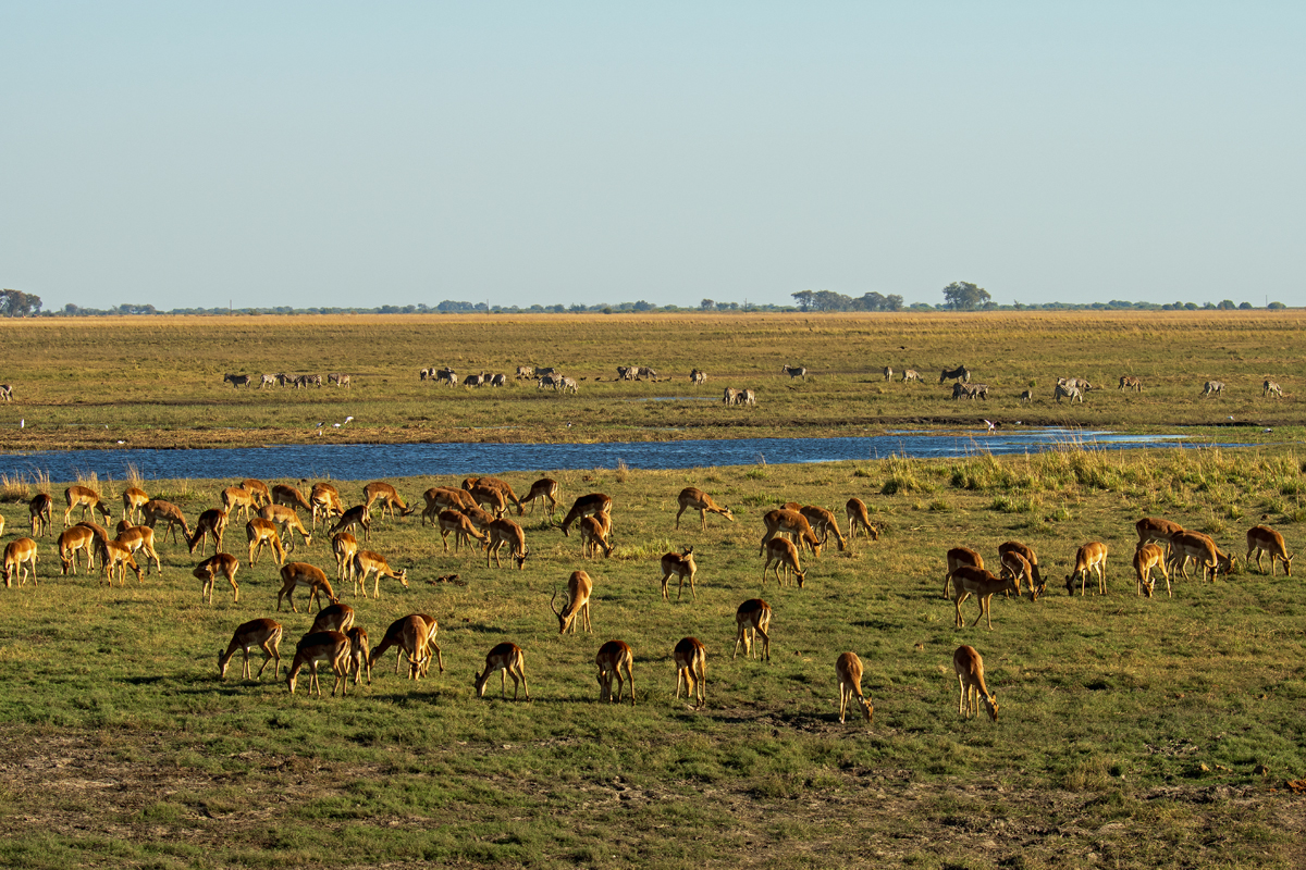 Berühmt ist das Gebiet für die größten noch existierenden Elefantenherden auf dem Planeten. Bis zu 150.000 Tiere halten sich dauerhaft in dem Gebiet auf oder ziehen in Richtung Namibia, Angola oder Sambia hindurch. Die stetige Weiterentwicklung des grenzübergreifenden Kavango-Zambesi-Schutzgebiets (KAZA) zwischen Angola, Botswana, Namibia, Sambia und Simbabwe mit seiner Größe von heute rund 520.000 km² macht das erfreulicherweise wieder möglich. Darüber hinaus gilt der Chobe Nationalpark als eines der wild- und artenreichsten Schutzgebiete Afrikas mit Löwen, Leoparden, Elefanten, Flusspferden, Giraffen, Zebras und zahlreichen weiteren Antilopen-Arten sowie unzähligen Vogel-Arten.