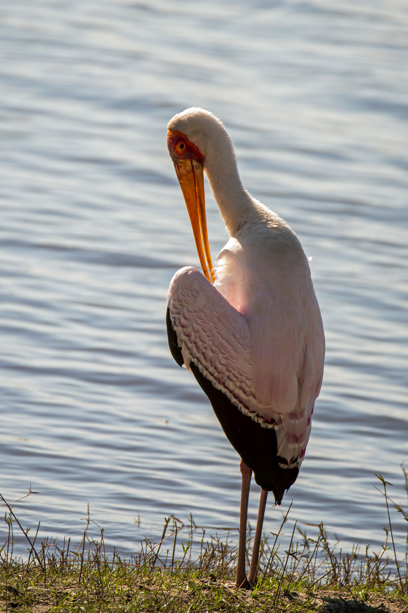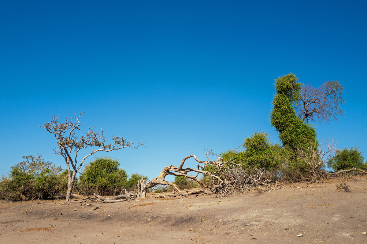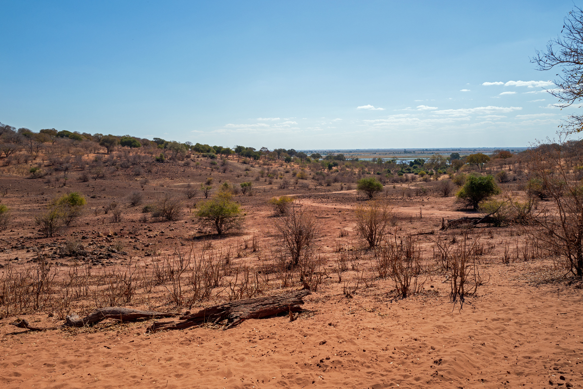 The riverbank is lined with floodplains, swamps, and the typical riparian vegetation, where most of the wildlife can be found especially in the dry season between May and October, because there are only few reliable water places in the park. The back country consists mainly of tree and bush savanna, and besides some lush gallery forests and grass savanna, there is also dry mopane woodland.